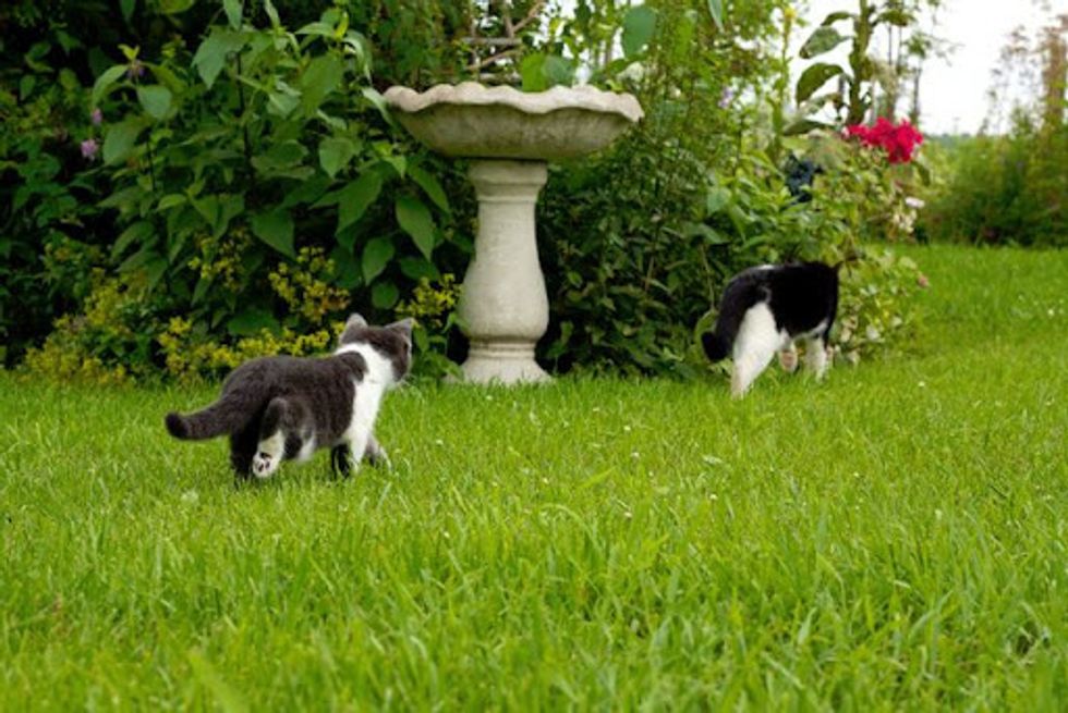 Also, a few weeks after getting Jack, we got a new barn cat named Bear. Bear is very friendly and likes to come sit outside with us in the evenings. I always take Jack outside at that time for some fresh air and exercise. He loves to run (at top speed!) around the back yard and gardens. Bear and Jack have become best friends. It doesn't matter that he can't see, Jack always knows when Bear is around. He'll run across the yard straight to Bear and wrap his front legs around his neck in a big hug. They chase each other around and wrestle, and when they're tired they'll lie down in the grass together.