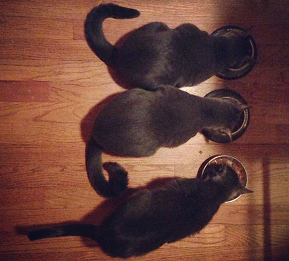 "A year ago, we rescued five infant kittens someone abandoned at my wife's workplace," said Dan Carlson via reddit. The couple gave every ounce of love and energy to save the kittens. Eventually three survived and thrived. "The vet said that we'd be lucky if one made it. To have kept three is pretty incredible."