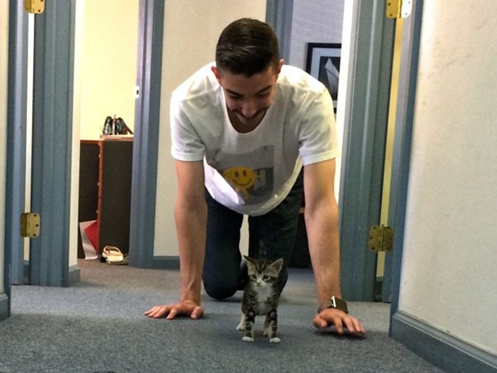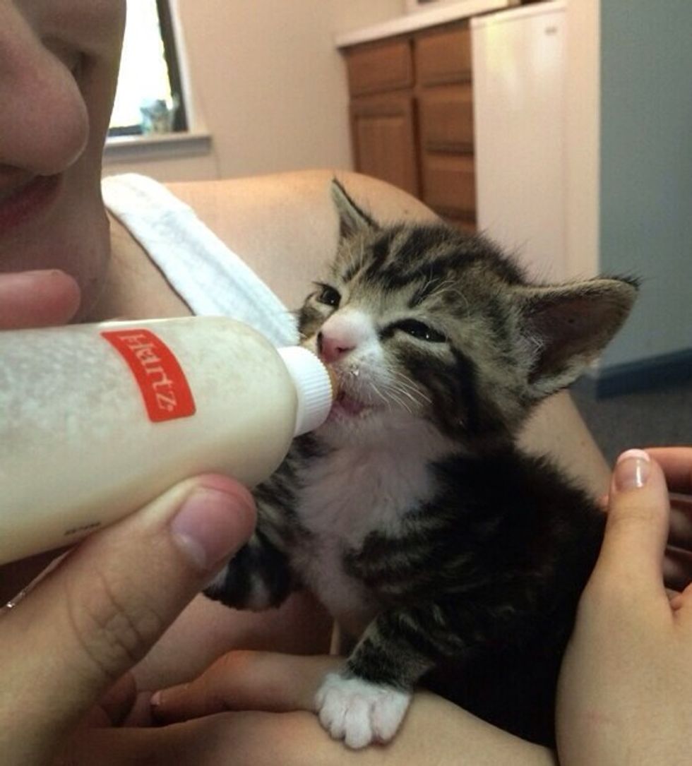 "I was just babysitting for a little bit! This was at my mom's office and her coworker fosters kittens. She was telling me how she had to get up in the middle of the night, just to feed these little guys when they were only days old (six weeks in the picture I posted)," said EdgarAlanPwnd of reddit.