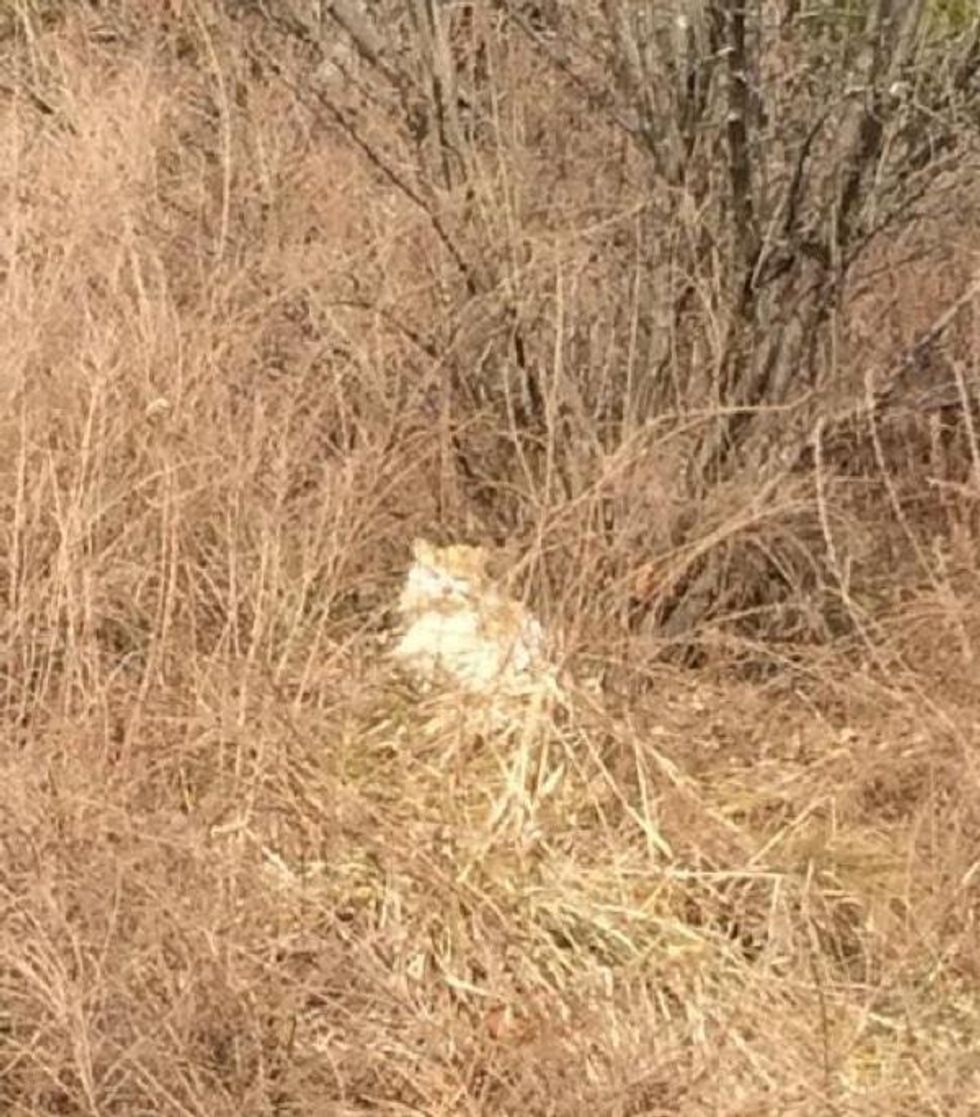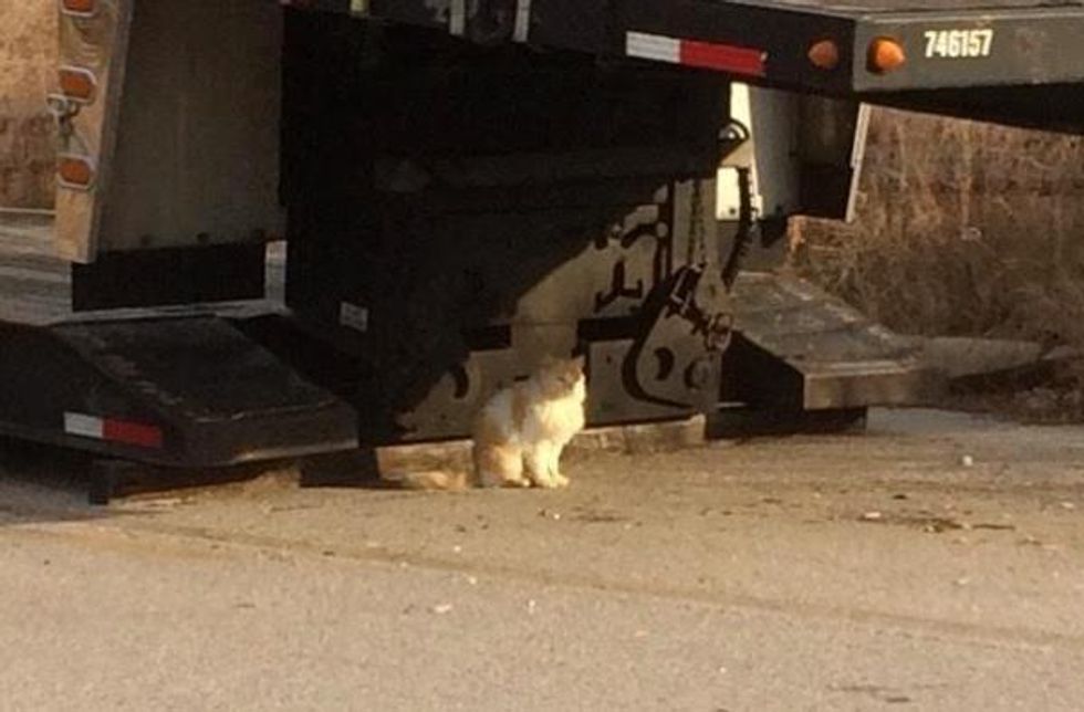 The ragged white and orange cat lived under large truck equipment and could only be seen from a long distance, but that didn't stop the kind woman from trying to win his trust. Deep down, she knew that he would come around if he got to experience love.