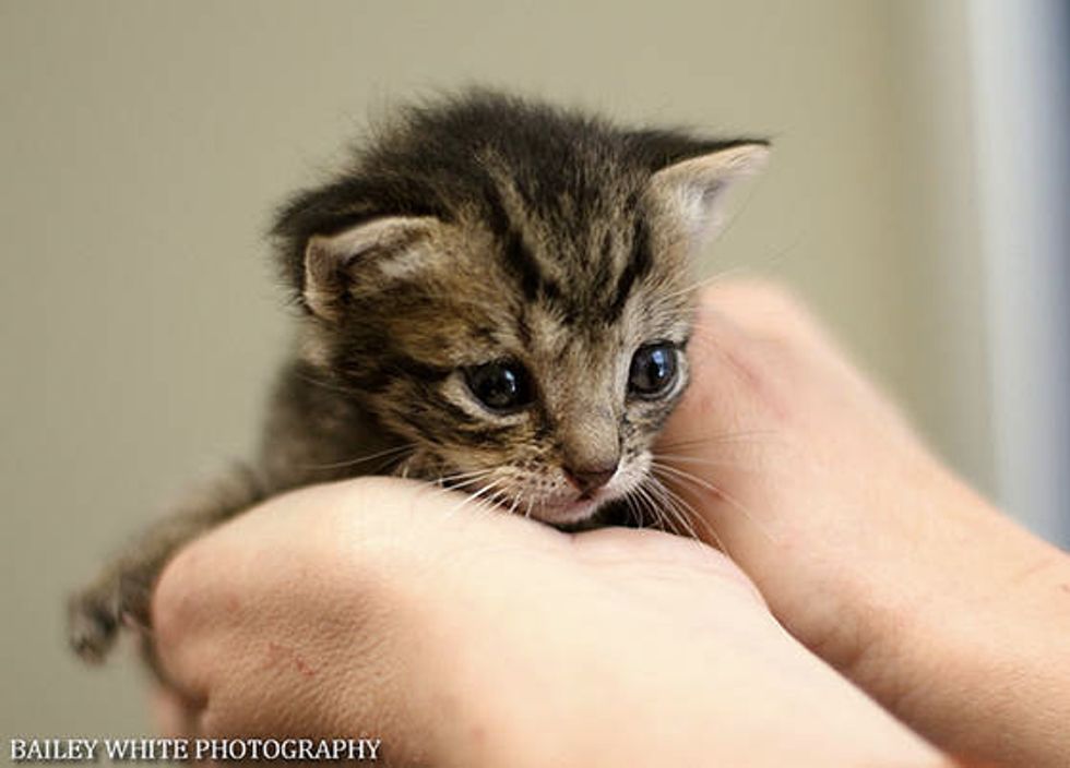 This tiny orphaned kitten was found in a culvert by a kind person who couldn't leave him there.
