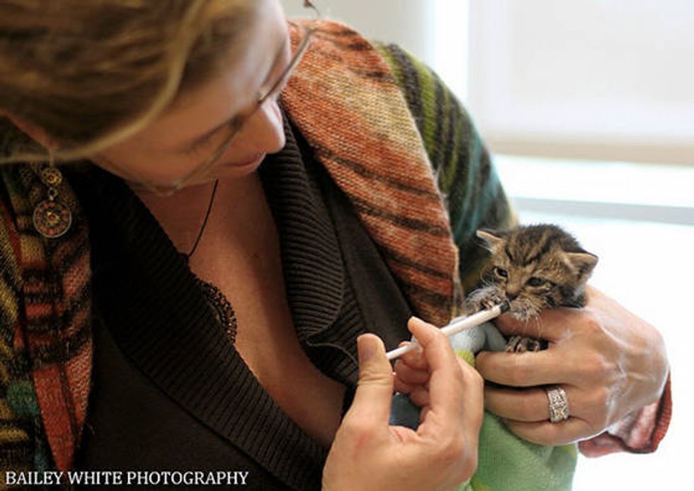 "This is an orphaned kitten adopted by my co-worker. She found him in a culvert just screaming his little head off and couldn't just leave him there. After a search for the mother turned up nothing, she decided to bring him home. And to the office - he has to be fed every couple of hours and is still too young to use a bottle. He is so adorable," said Carol White. (flickr)