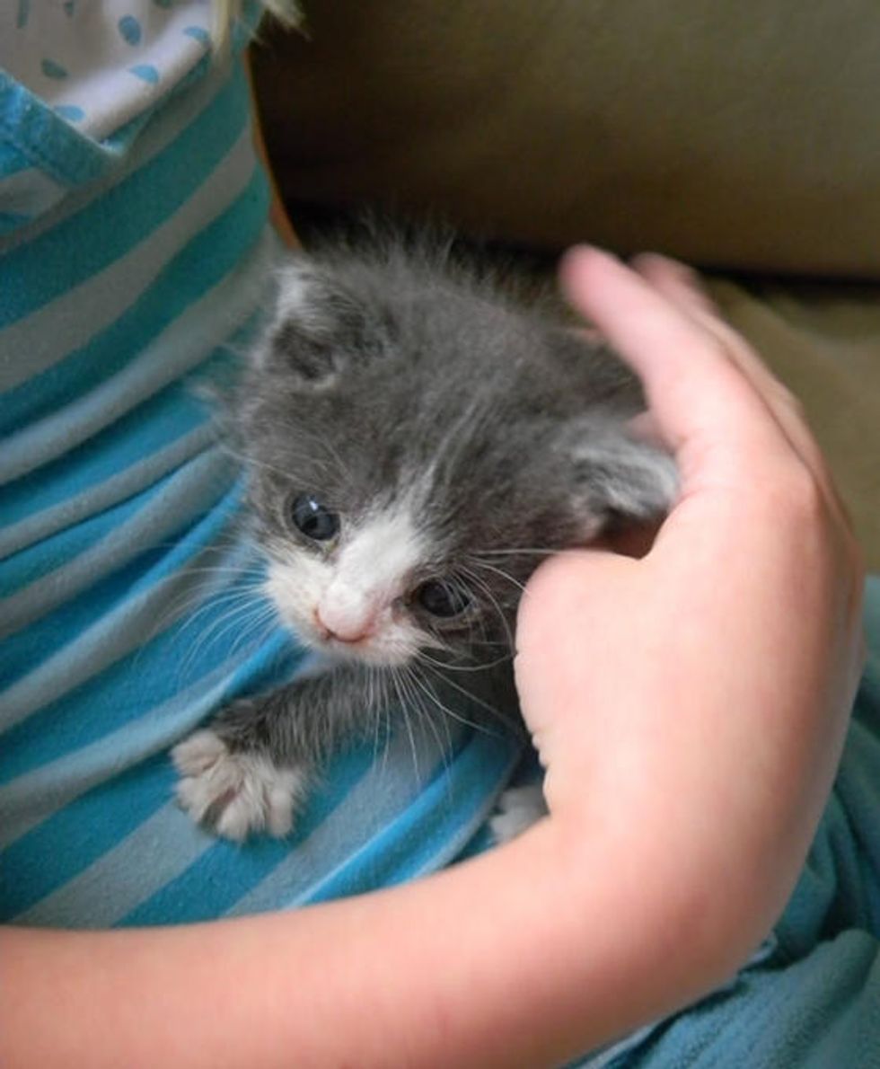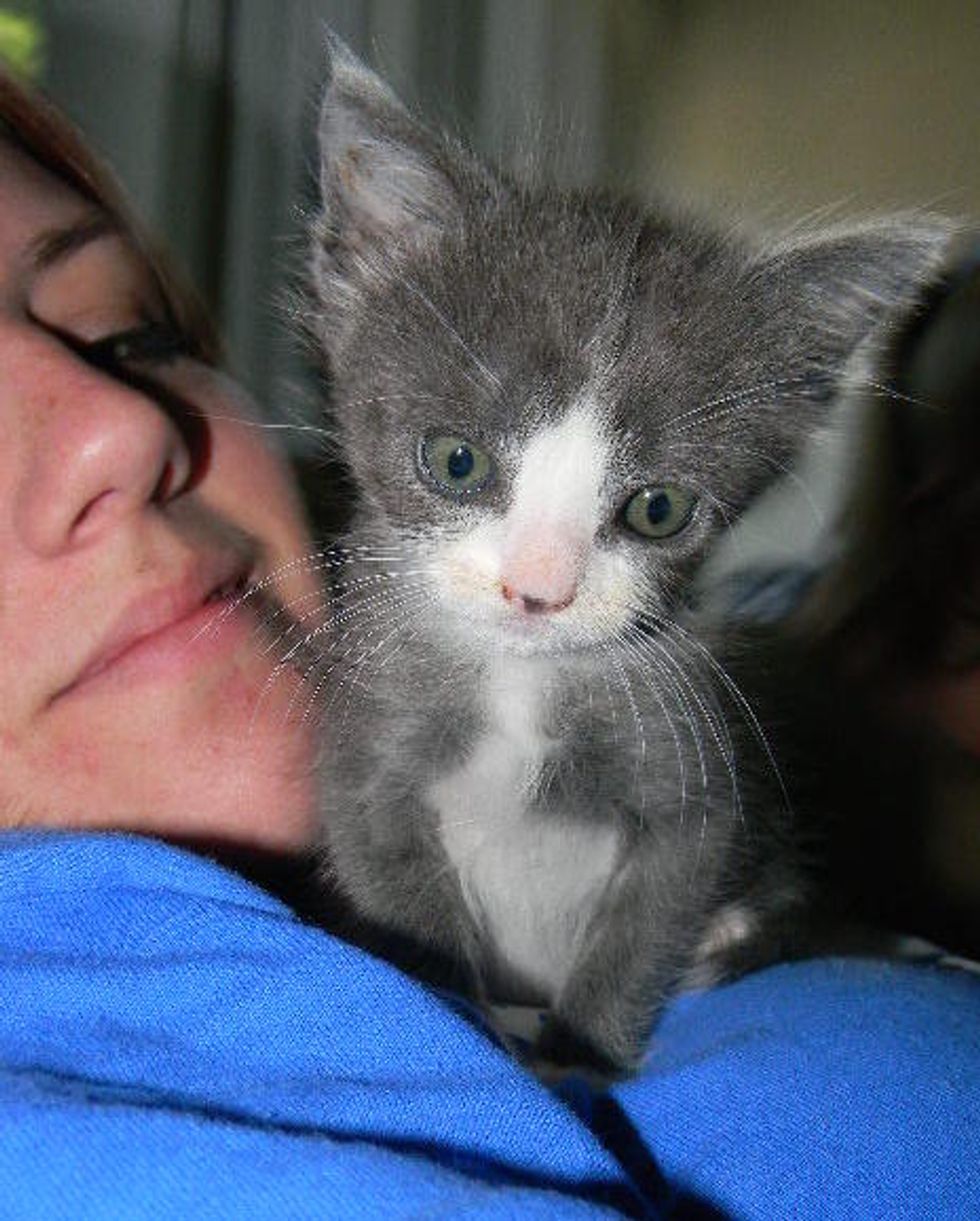 Kisses was only 2 weeks old when she came into the shelter without a mom or siblings. The little orphaned baby was brought to her foster mom in a shirt. "I saw her adorable little face, her bright eyes, and pudgy belly and was instantly smitten! I couldn't help but take her home," said Kitten in My Pocket. It was then Kisses found her second chance at life.