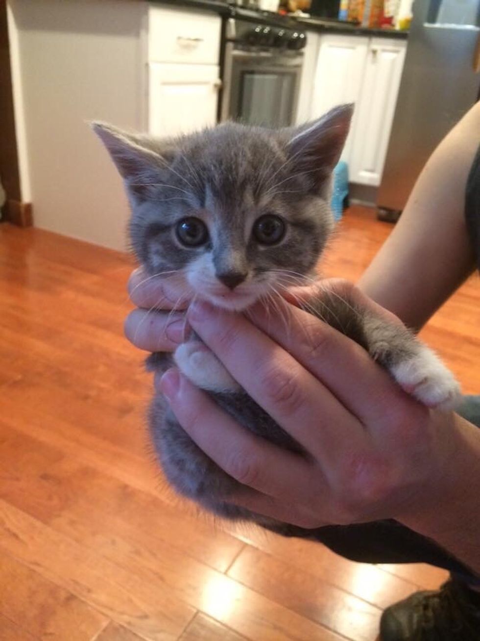 No one came to claim the kitten. By then he knew she was most likely a stray and had chosen their house to be her new home.