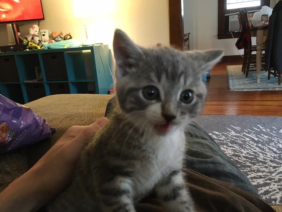 "One vet and pet store trip to pick up a clean bill of health and some much needed kitten supplies and now...we have a cat," Fizz added.