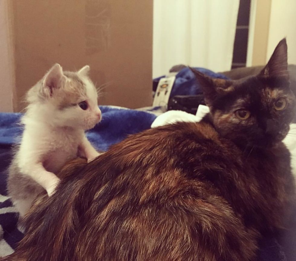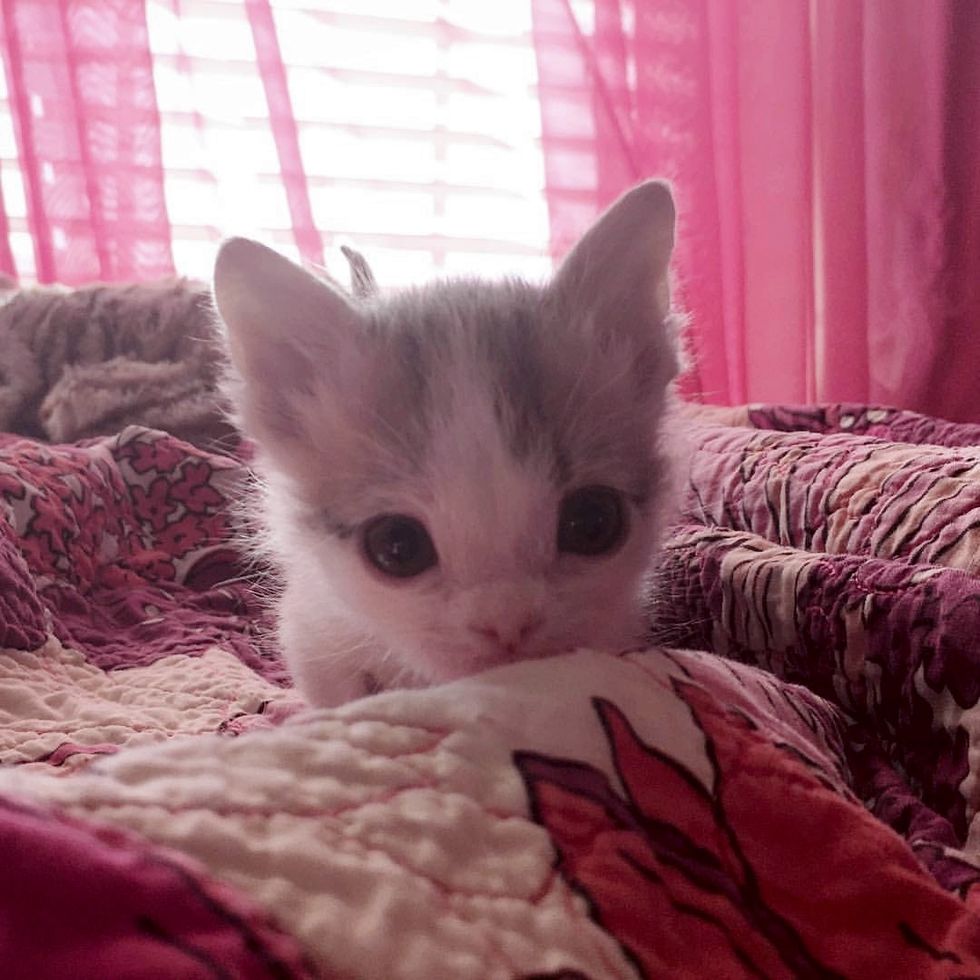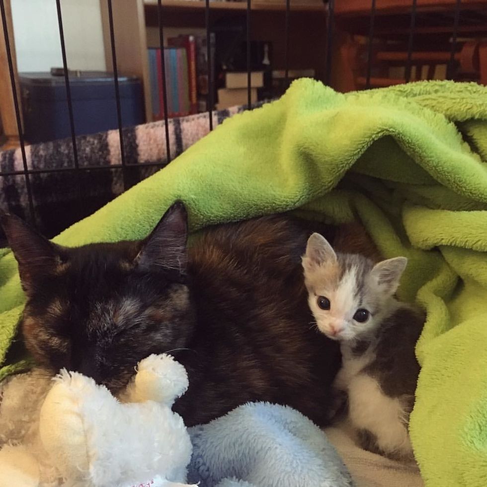 The next morning, when they contacted the shelter, they learned that the cat mom hadn't been nursing. Despite their very best efforts, the other kitten who was with the mama, didn't make it. Gemma became the sole survivor of her litter.