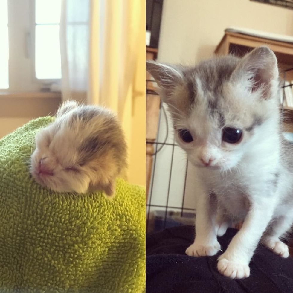 But somehow, the little miracle kitten pulled through. "I didn't have confidence in her living until one month in, when her problems began to go away and she was acting like a normal kitten."