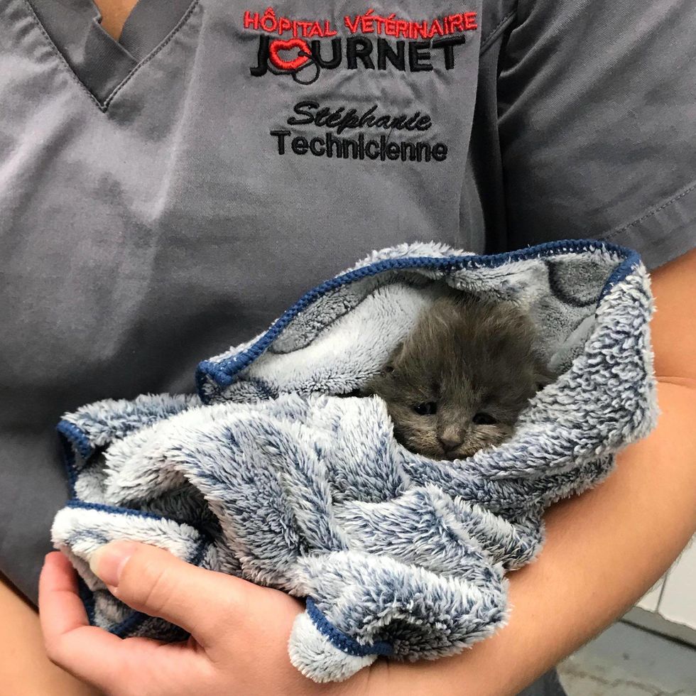 The kitten was in poor shape and didn't have any appetite. Worried that she might not make it through the night, they reached out to Chatons Orphelins Montréal for help.