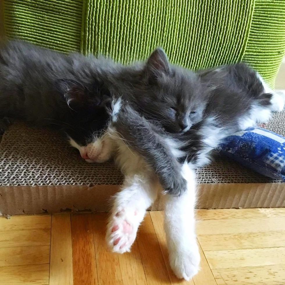 They are like two peas in a pod, completely inseparable. "We often find them cuddling with each other on top of the cat tree."