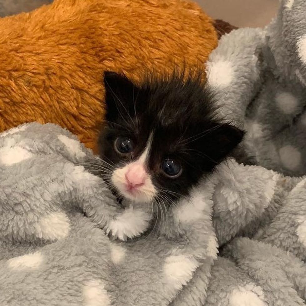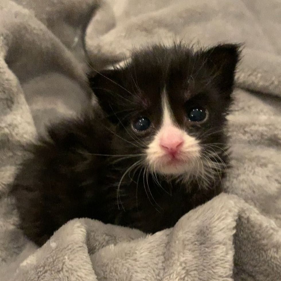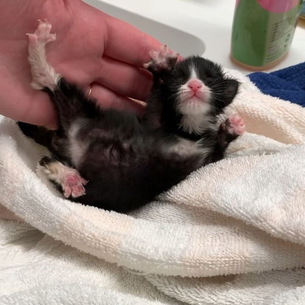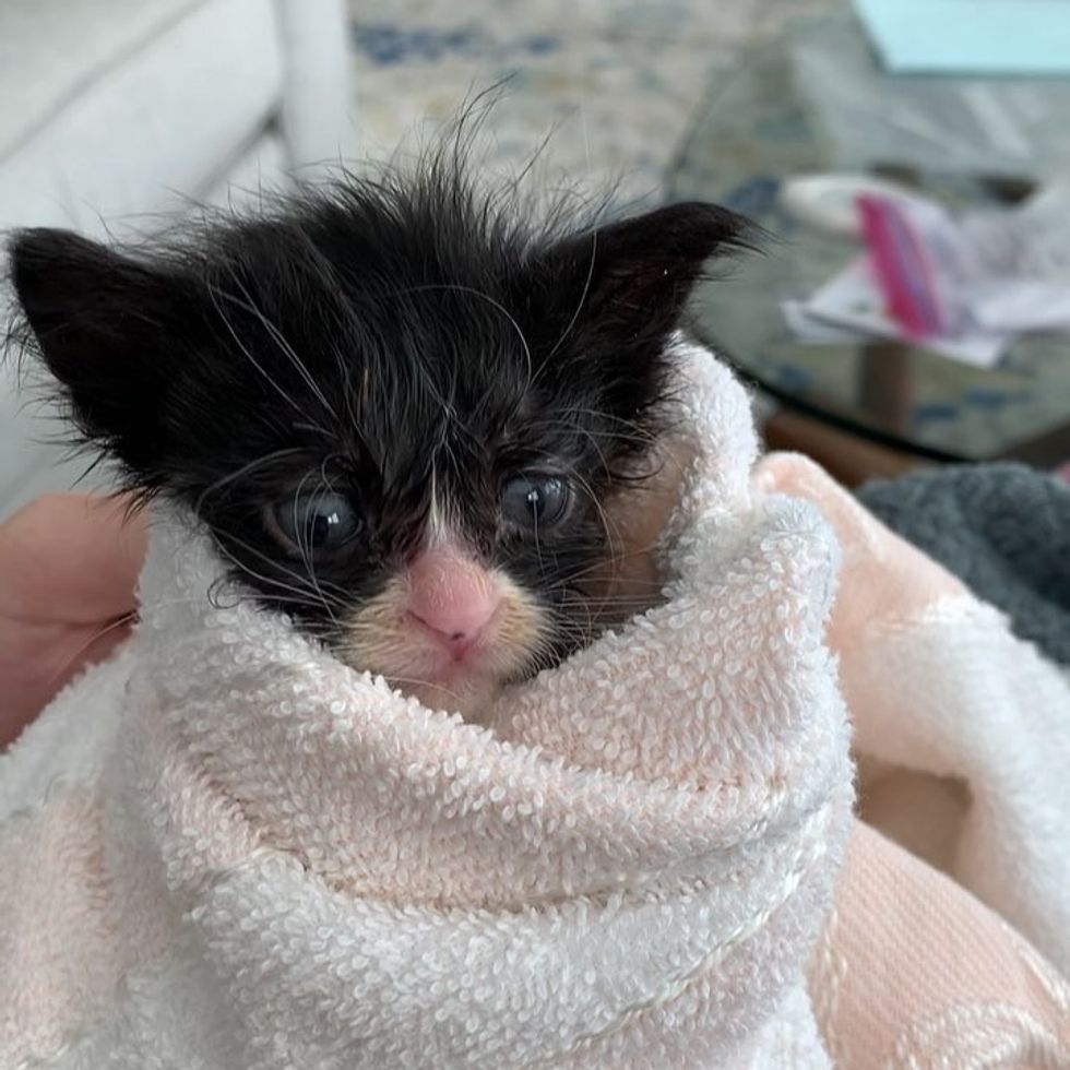 Pippa had to be separated from her siblings due to a large wound by her rear. "It was filled with maggots. We flushed them out," Jess told Love Meow. "The vet said the wound was really deep for such a tiny thing, and the prognosis was bad. He told me that I should euthanize her as she probably wouldn't make three more days in my care."