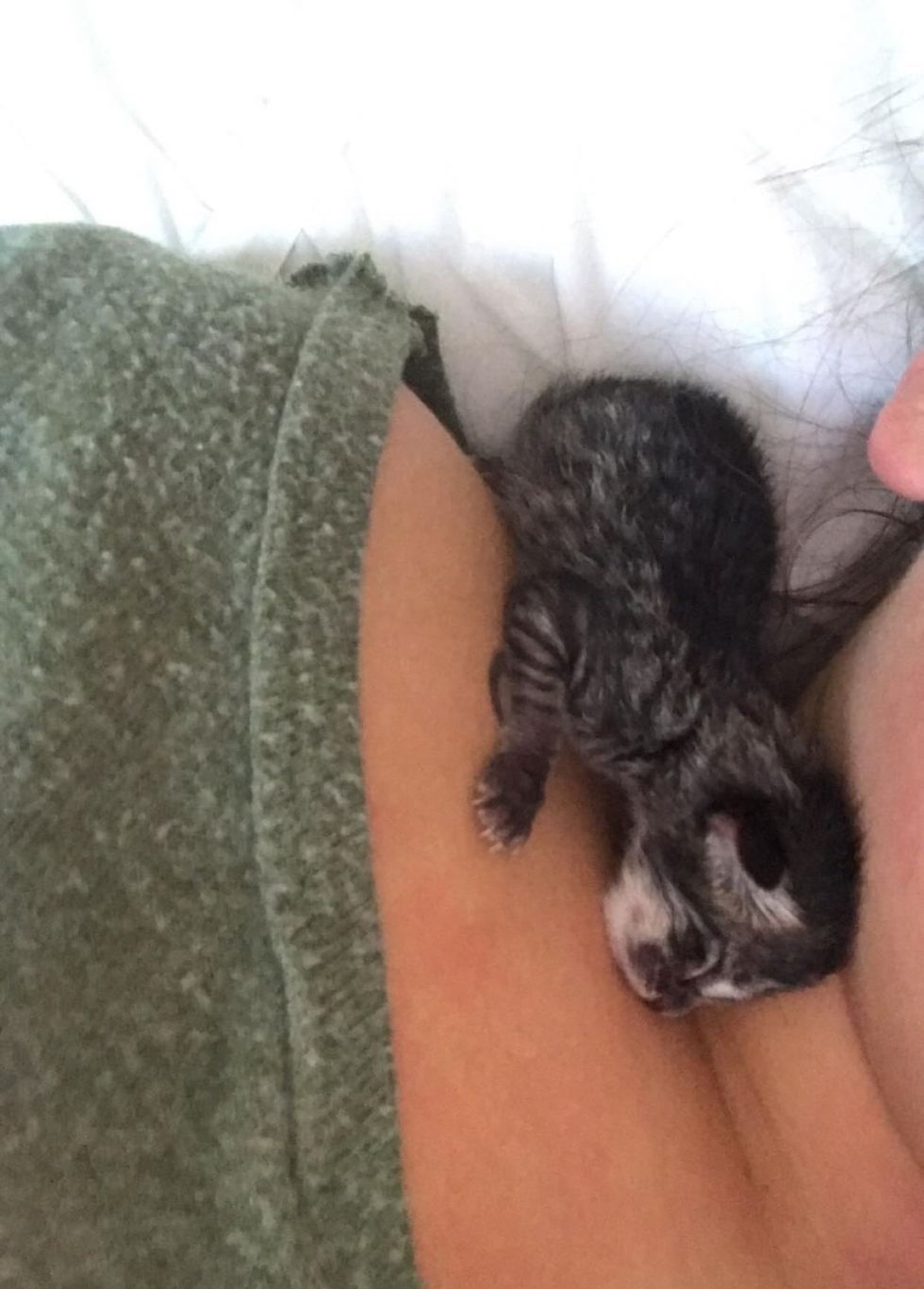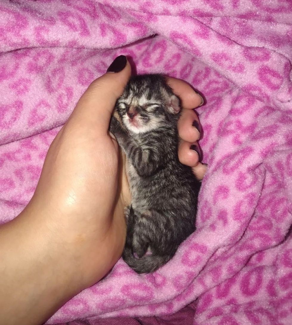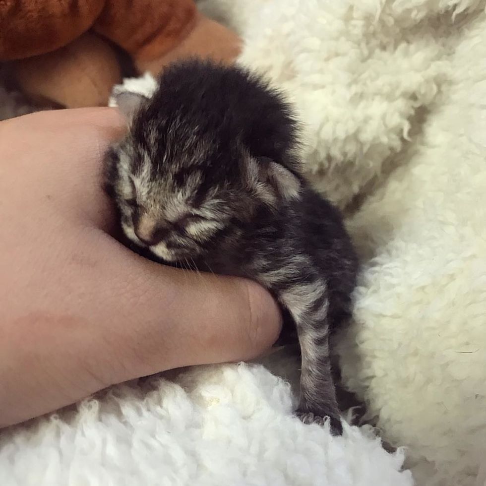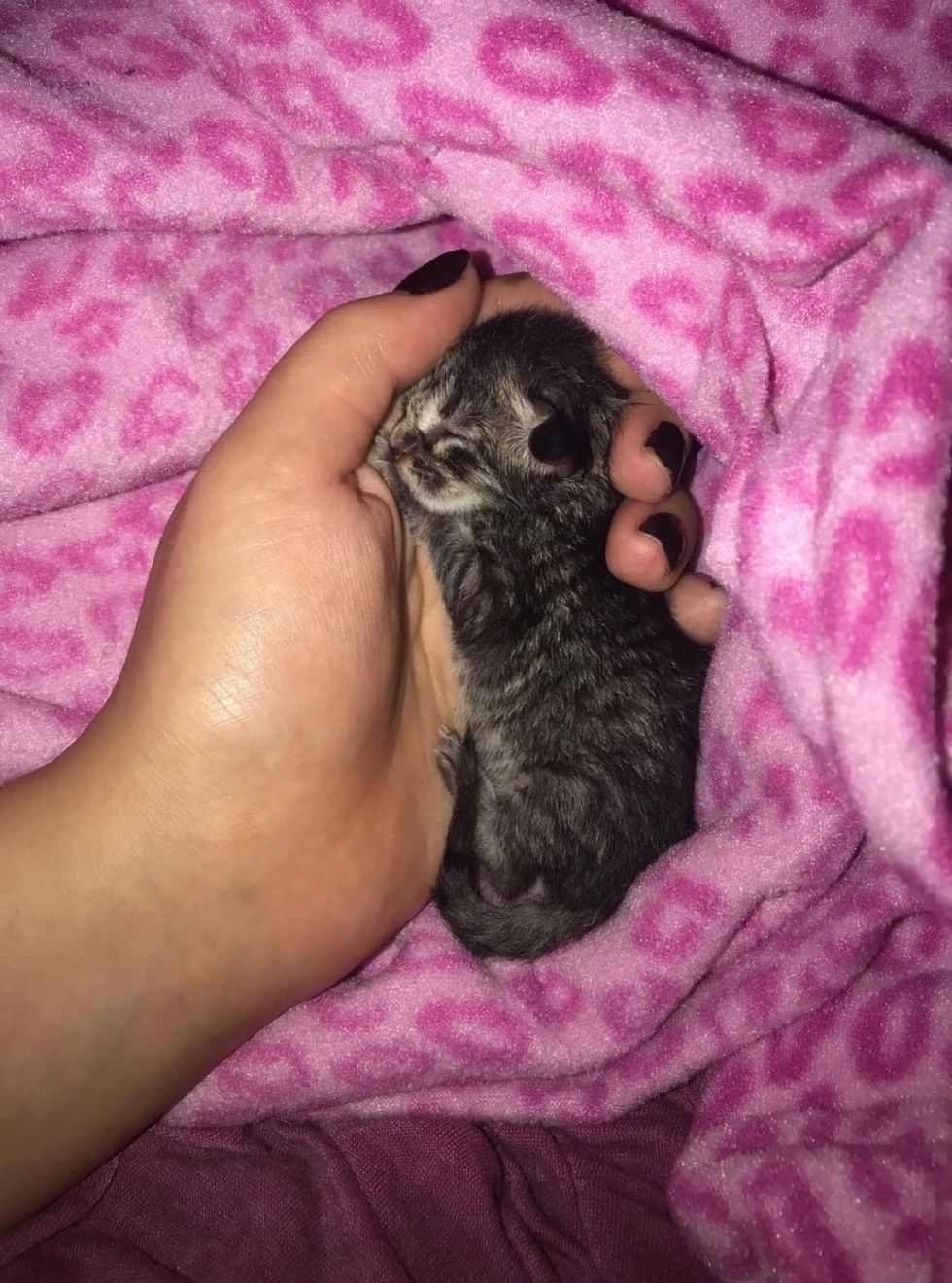 The kitten appeared to be a newborn still with her umbilical cord attached. Later that day, Avery Ortman saw a picture of the tabby and a plea for help from the person who found the kitten.