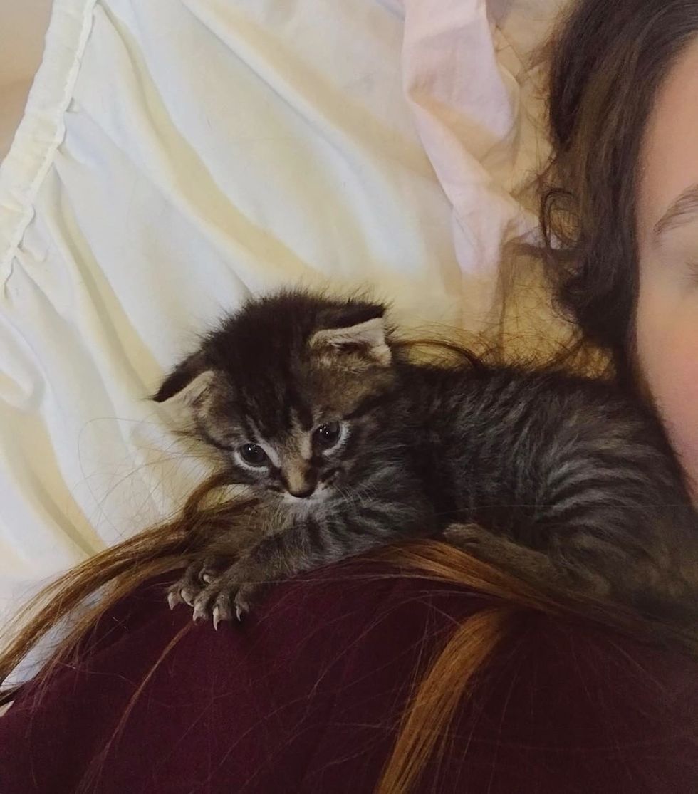She was going to care for the kitten until she was big enough for adoption, but the tiny feline had a different plan.