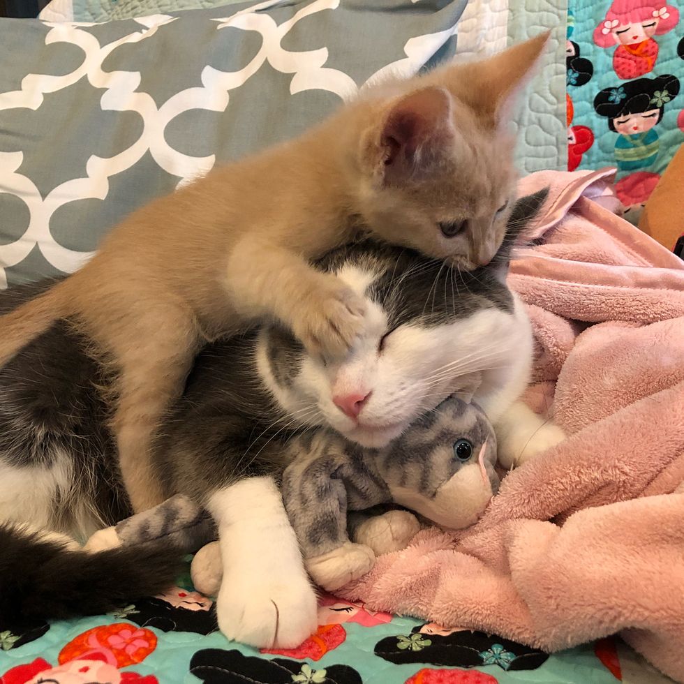Despite having many snuggly toys, all he wanted was to be around other feline friends.