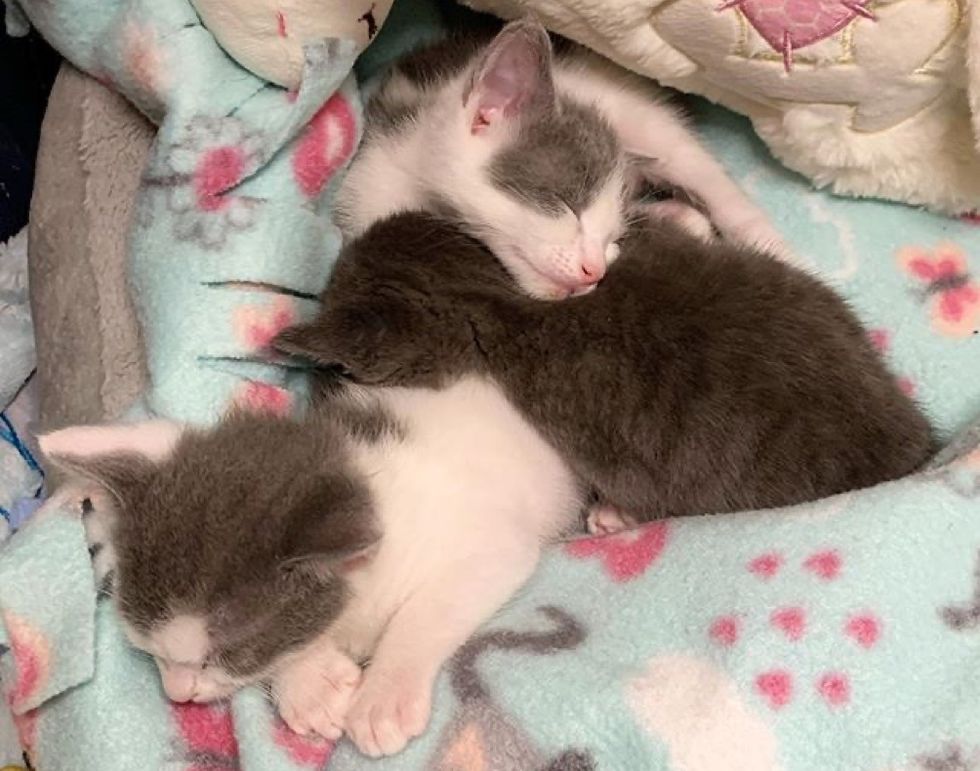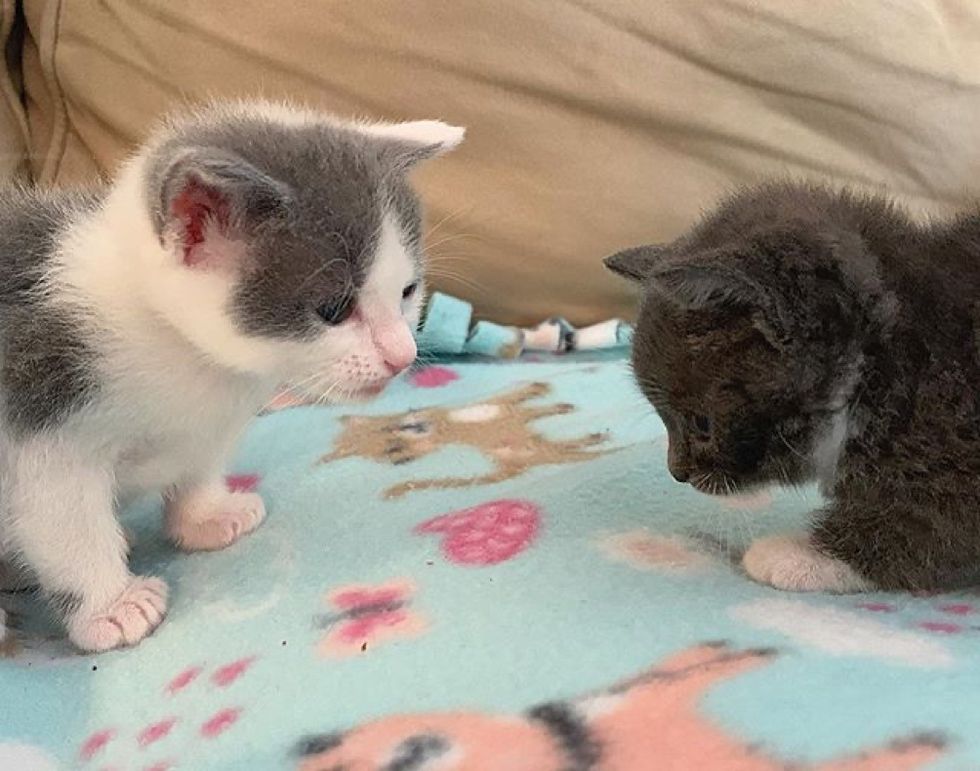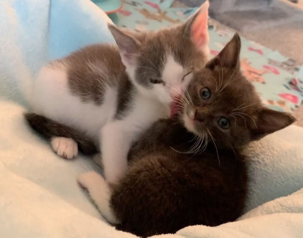 The two siblings were in poor shape, struggling to eat. With round-the-clock and painstaking care from their foster mom, they bounced back on their paws and began to thrive.