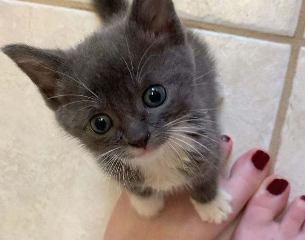 A 3-week-old kitten, Jules, was brought to The Animal Welfare League of Arlington as a singleton. She was in desperate need of foster care and a friend to cuddle.