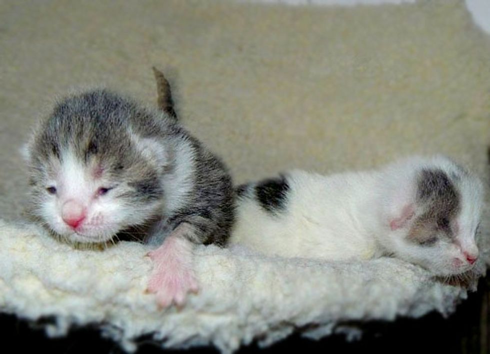 Andreea found two tiny abandoned kittens in the middle of a park. It was a cold and rainy day. The kittens' eyes hadn't even opened yet.