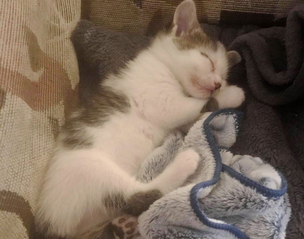 Foster volunteer Miléna took the kitten home and started round-the-clock feedings. The tiny bundle of fur latched onto the bottle like a champ and was so content to be hand reared.