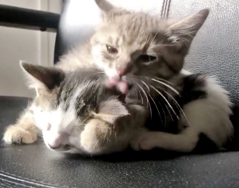 A kitten who was found as an orphan, met another cat in foster care. It was love at first sight.