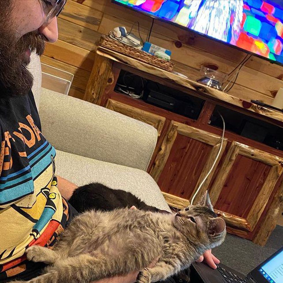 But most of all, she is the cuddliest lap cat and a purr machine, and shares an unbreakable bond with her Foster Dad.