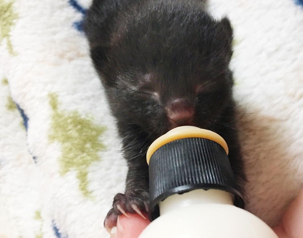 The kitten named Beatrice latched onto her bottle like a champ and scarfed down the food as if there was no tomorrow. After getting a full belly, she was tucked into her safe nest inside an incubator and fell fast asleep.