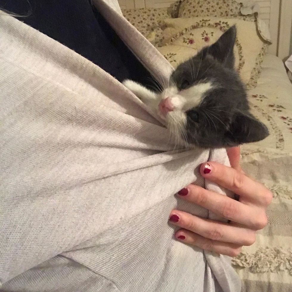 "She would be happy being carried 24/7," Tara said. "She likes to be cuddled into sweatshirts or close to your face. She's so cute the way she demands to be held."