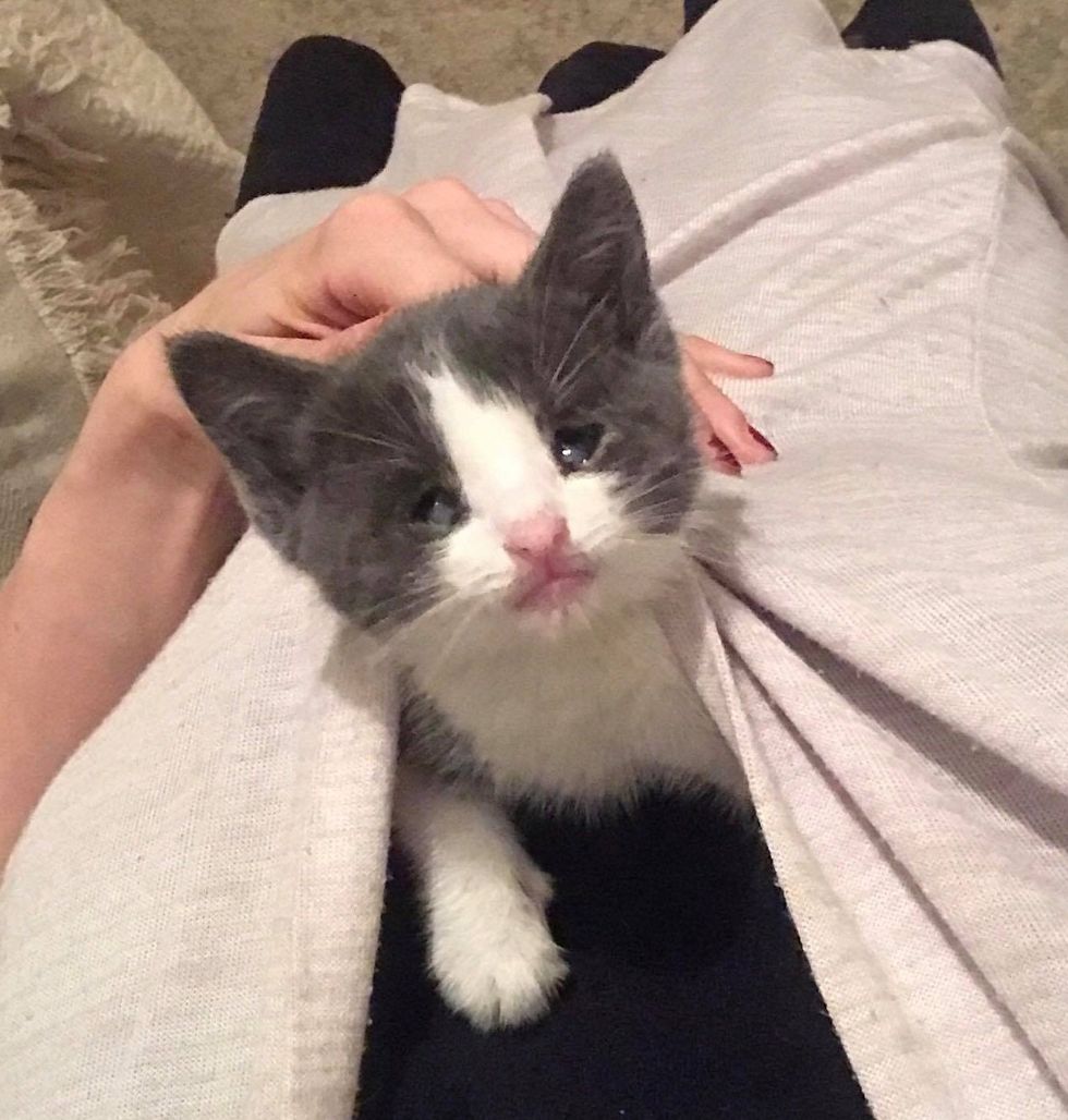 A 3-week-old kitten was found wandering the streets all alone in Massachusetts. She was taken to a shelter where they discovered that she had been born without sight.