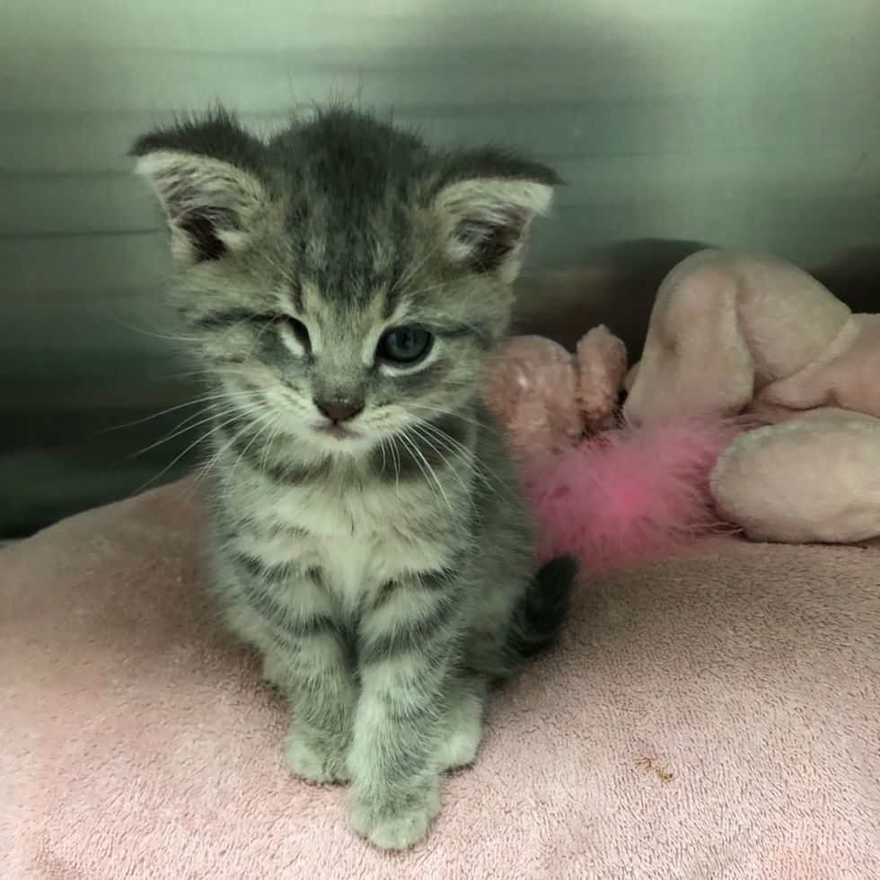 They knew that the little girl needed a home and someone to love. Matty's sister, Kayleen, who works at the clinic, asked him if he would bring home a little kitten.