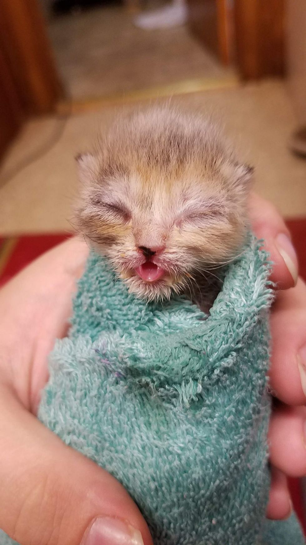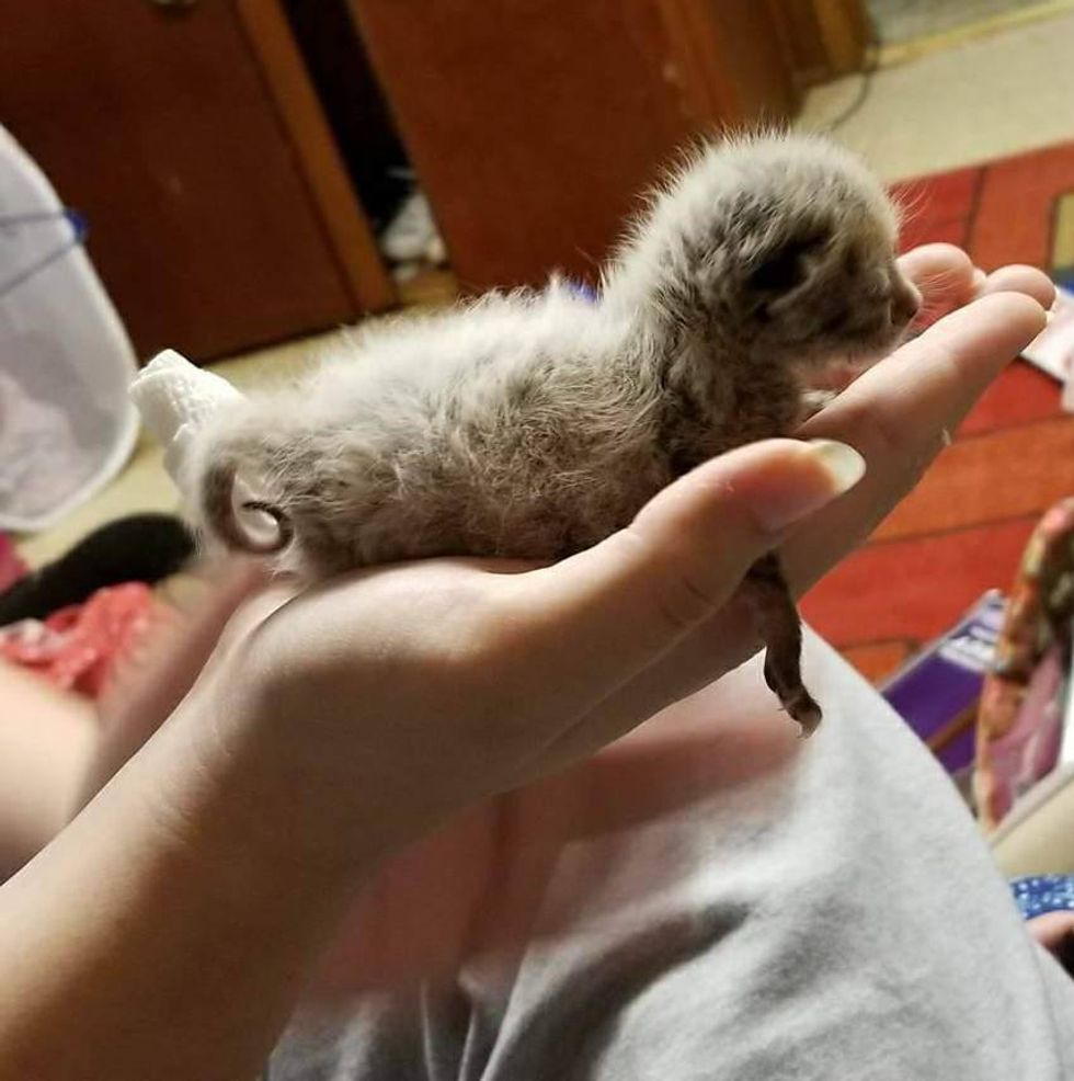 When Sarah Phillips learned about the kitten's plight, she was two days old. No one expected her to live past one week, but Sarah wanted give the little feline a fighting chance and offered to take her in.