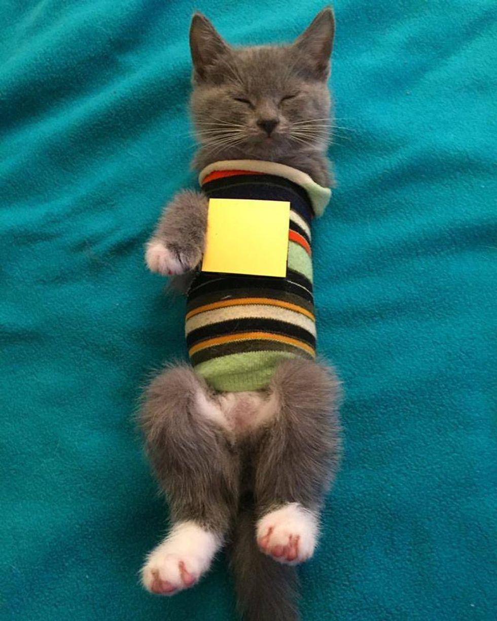 The tiny two month old kitten (just about one pound) was missing a limb, then they detected something else about her. "The vet staff at ACCT Philly thought she had a diaphragmatic hernia, so she was 'timestamped' (at risk for euthanasia), Holly Dixon told Love Meow.