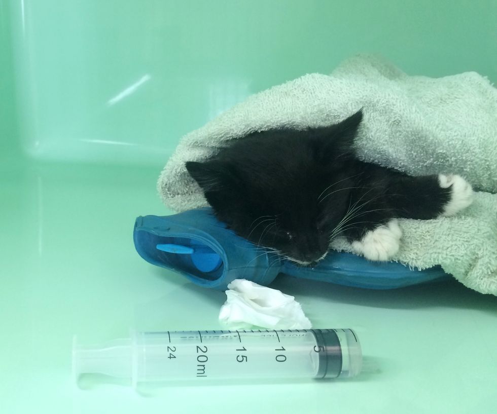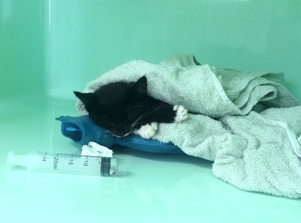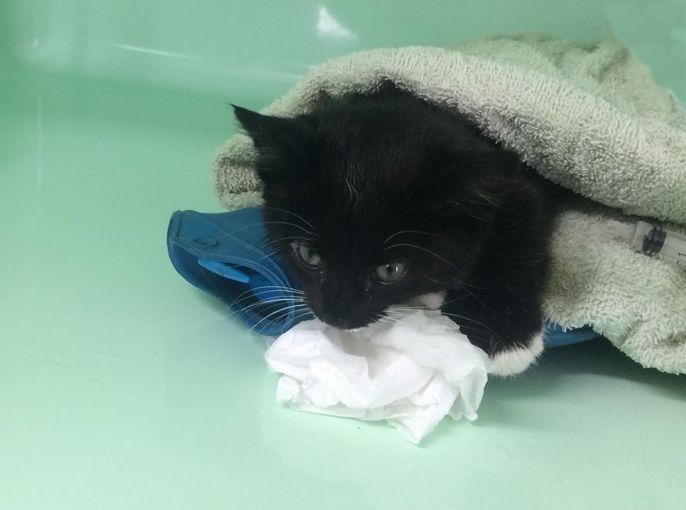 The kitten was just minutes away from death hours before that. He was emanated and desperately dehydrated. The veterinary staff wasn't sure if the tiny feline would make it, but they were determined to try everything they could to save him.