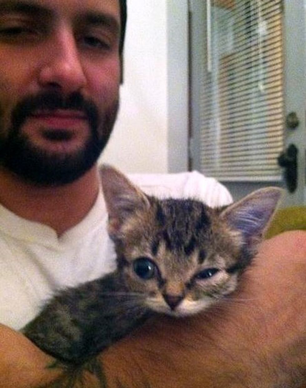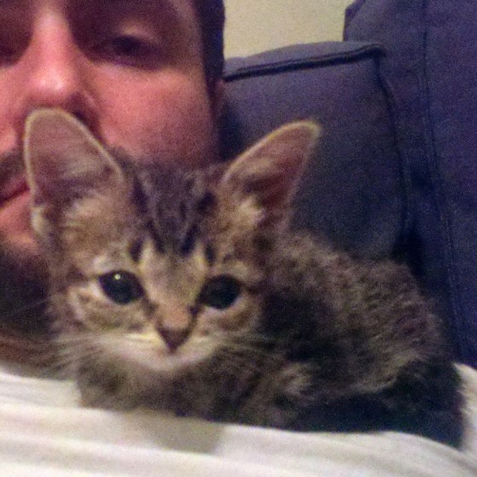 Our beloved toothless kitty Bub was just 8 weeks old when she came to her new home. "BUB is one of a kind cat, rescued as the runt of an otherwise feral litter," Bub's human dad Mike Bridavsky.