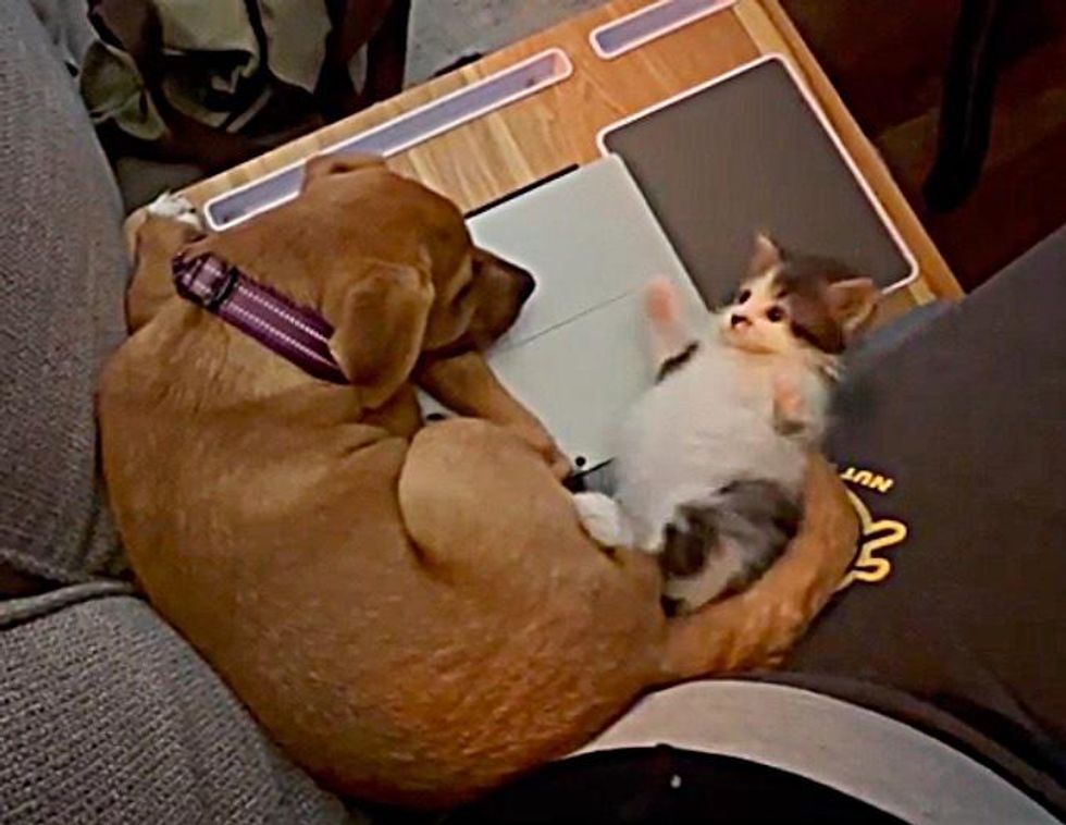 Ralfie is the happiest puppy when he is with Grace. The sweet-natured boy tolerates the kitten's many antics and embraces her with his whole heart.