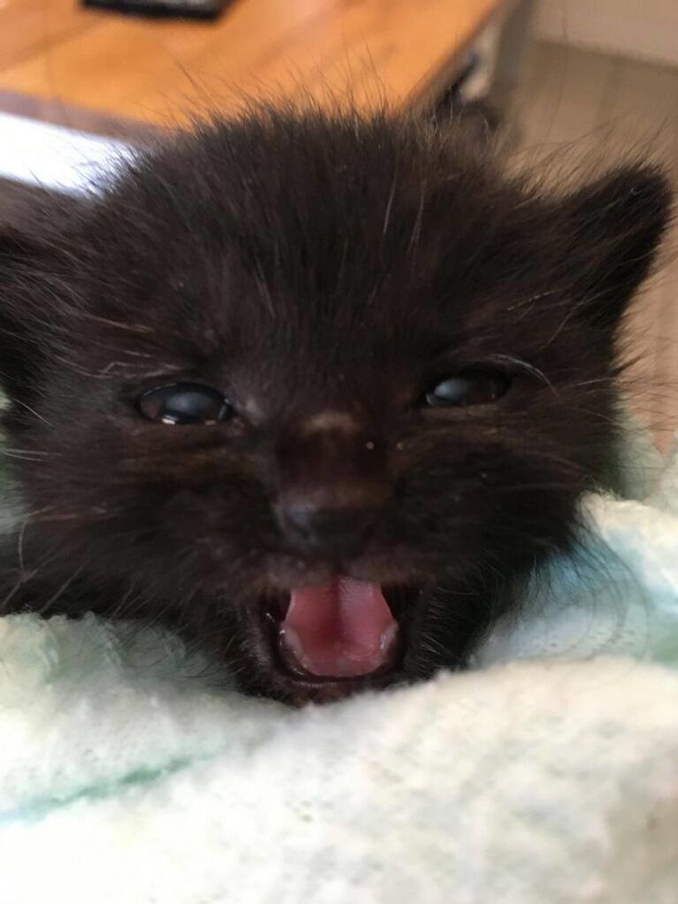 The kitten was just a couple of weeks old and still needed bottle feeding. One of their volunteers picked him up from the kind people that found him, and took him home to foster.