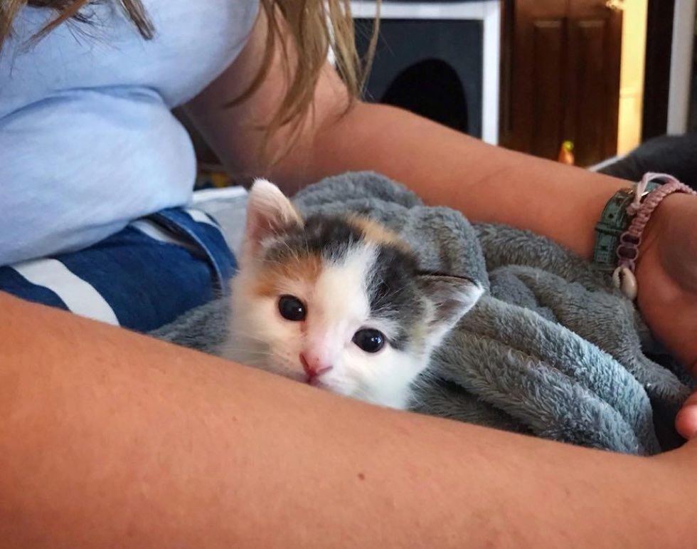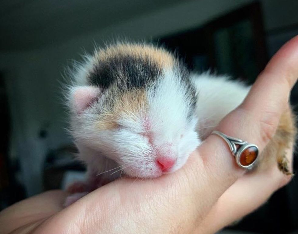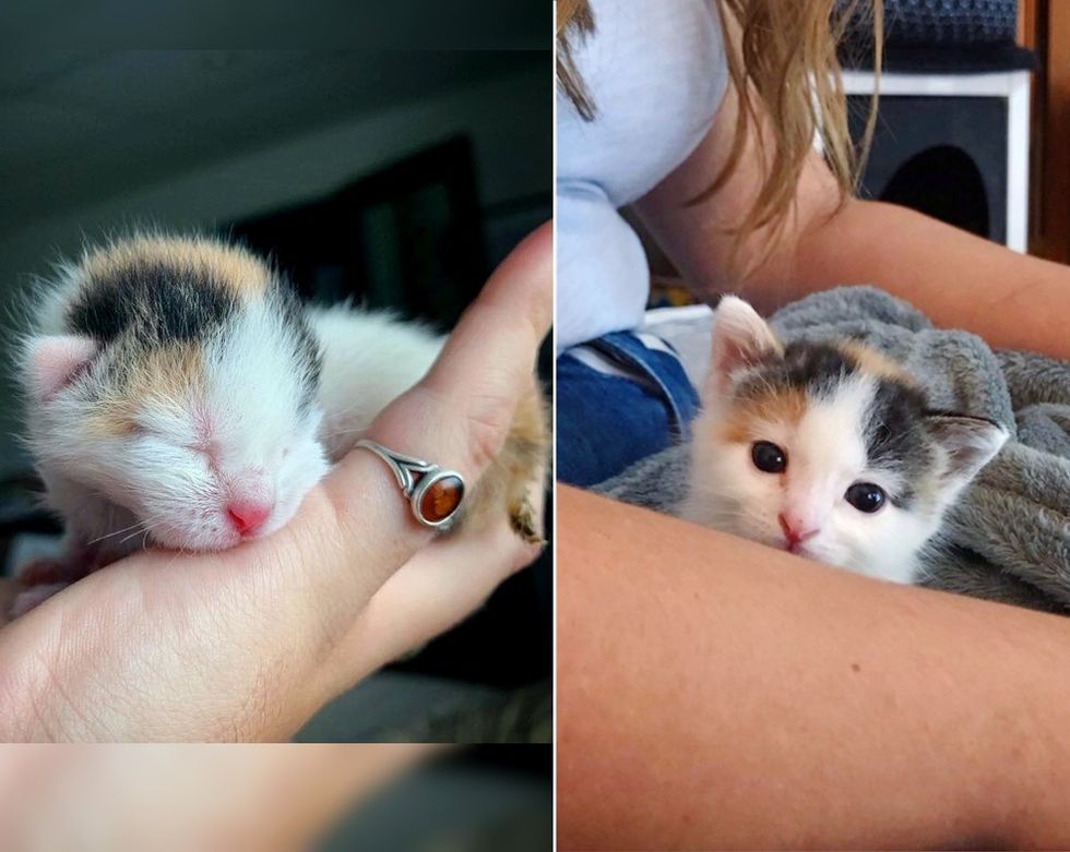 "This little kitten is one of the lucky ones. She was found as a newborn without a mother and rescued just in time."