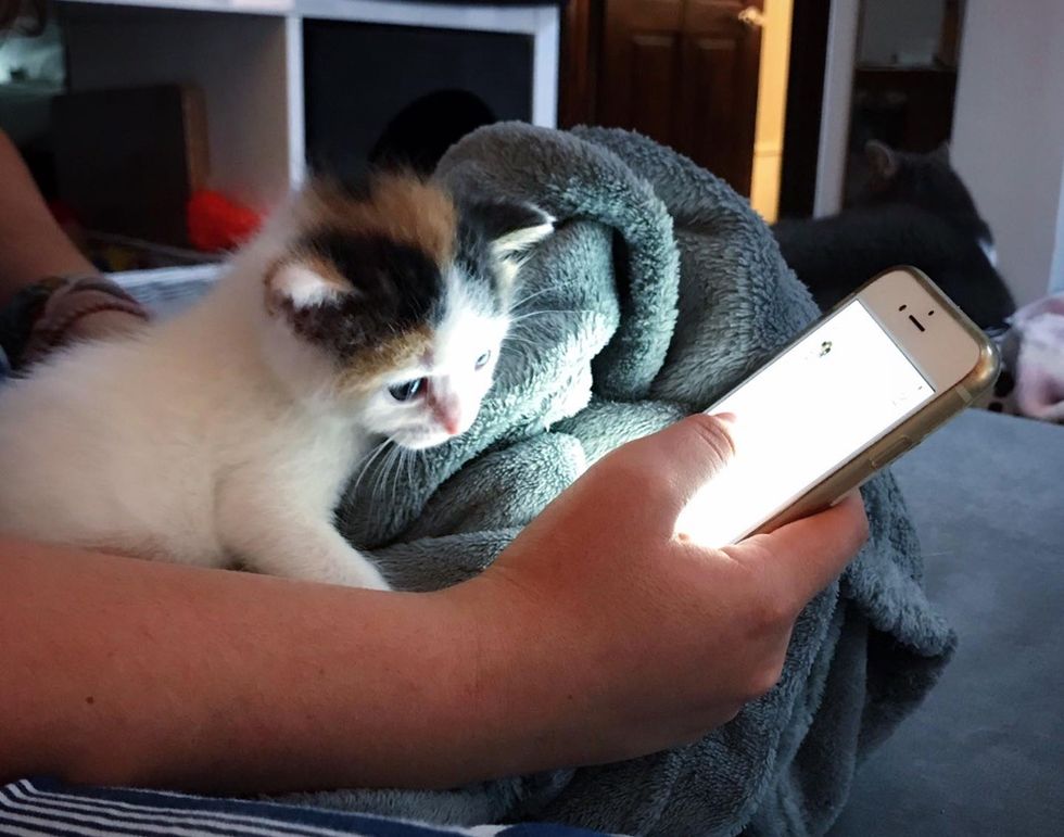 "We named the kitten Carla. She was left behind soon after she was born. Our bottle-feeding foster took her home and started feeding her every two hours around the clock."