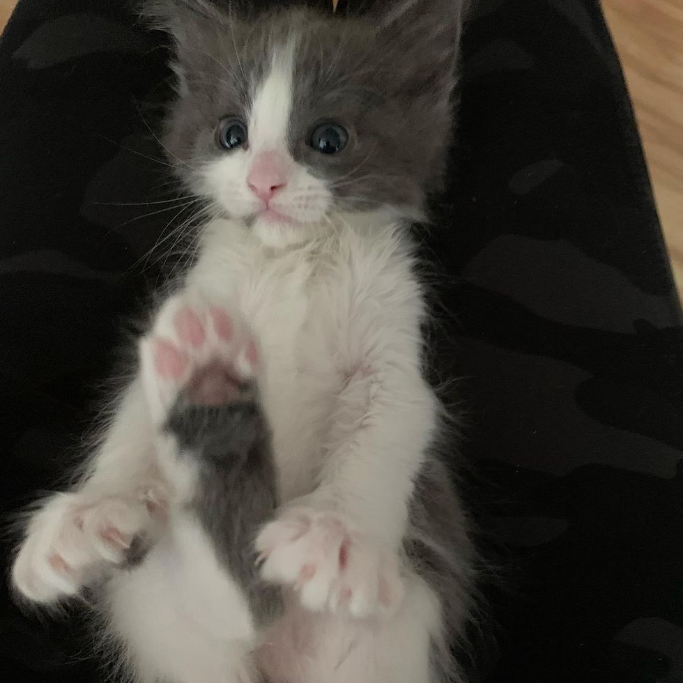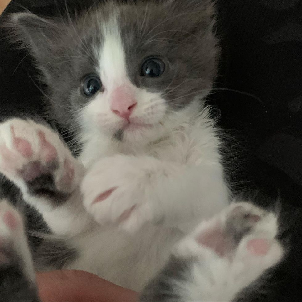 In two weeks, Willow has made a complete 180 — she has grown in size and fluff, and her personality is emerging. "She is super playful and sweet. She is at that stage where she is learning about everything around her and batting at it all with her paws."