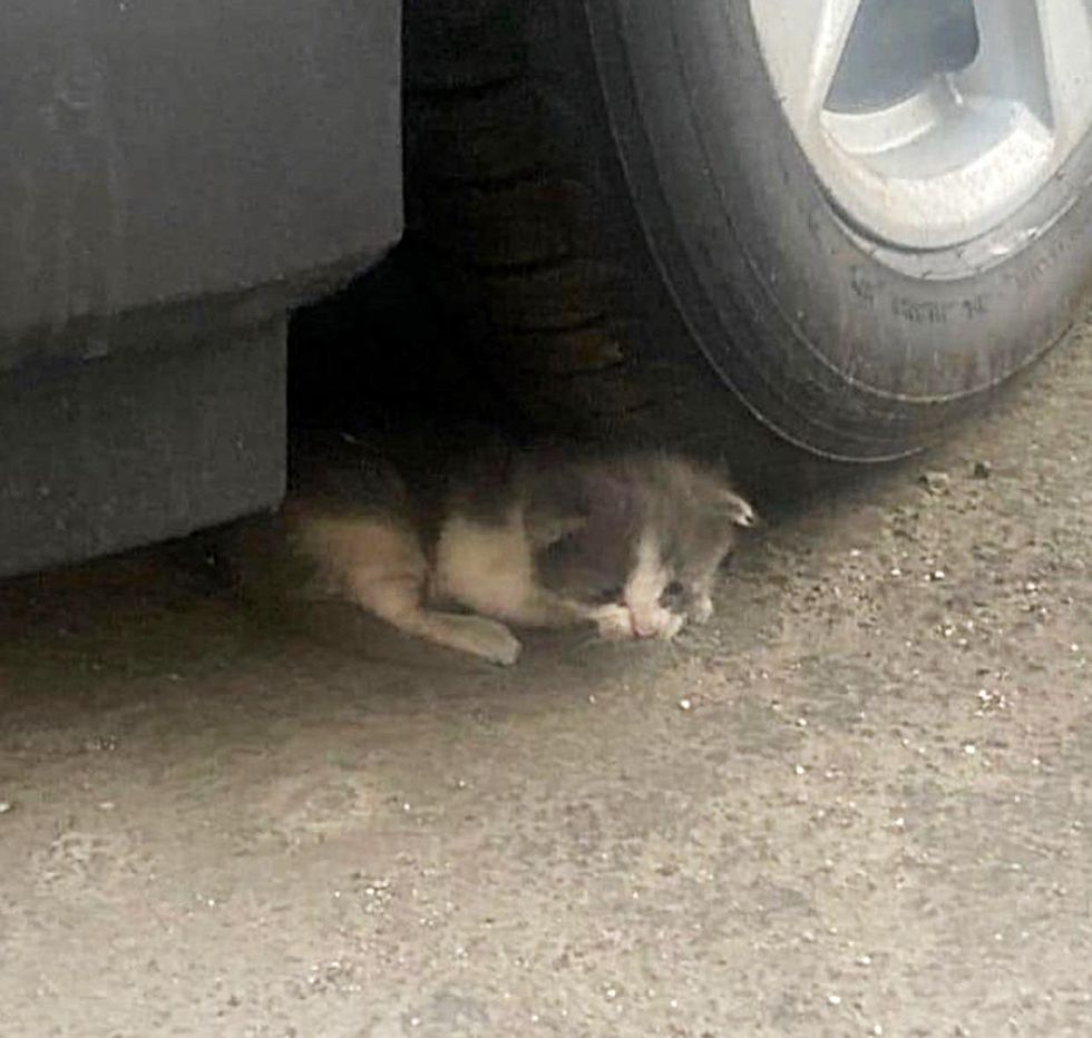 Early August, a concerned citizen from the San Fernando Valley, California spotted a small kitten lying under a car on an industrial property.