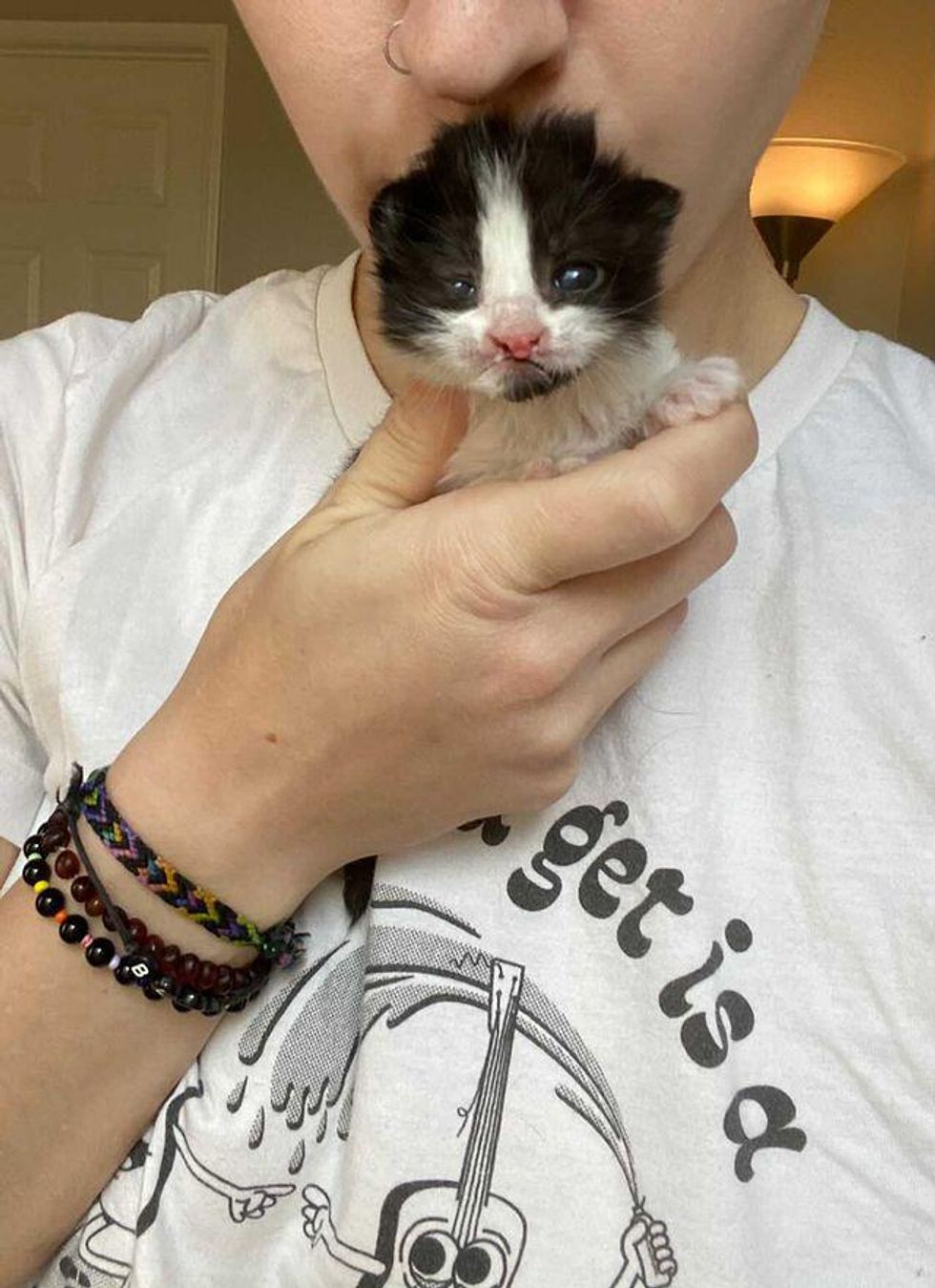 Share this story with your friends. Follow updates on the tuxedo kitten and Ashley's fosters on Instagram.