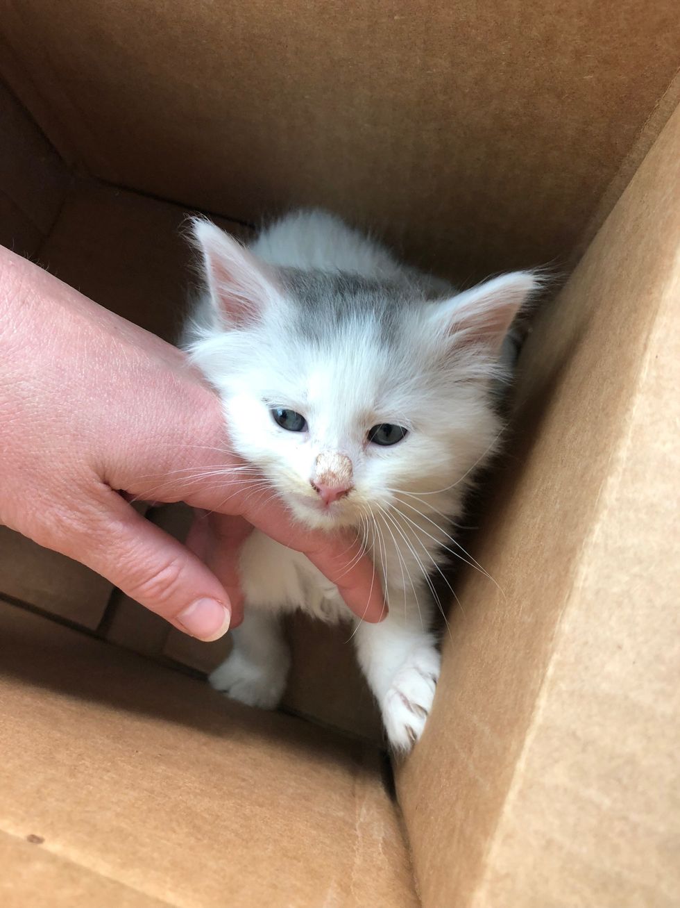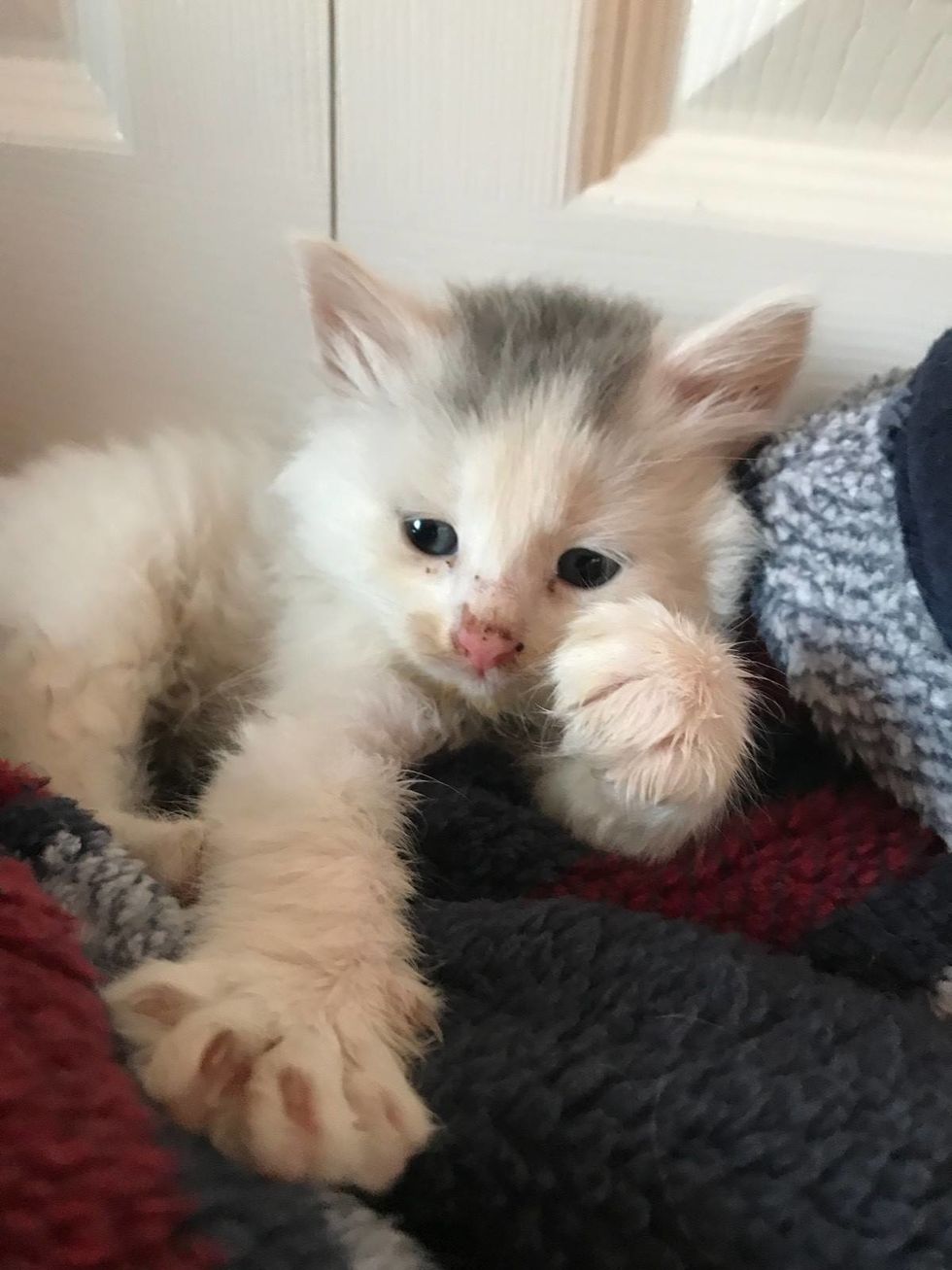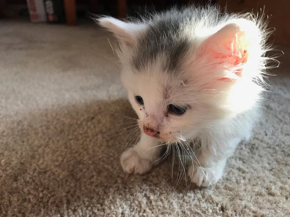 The kitten's rescuer and his wife have previously adopted from IBKC, so they reached out to the rescue since the kitten wasn't eating much and needed extra medical attention.