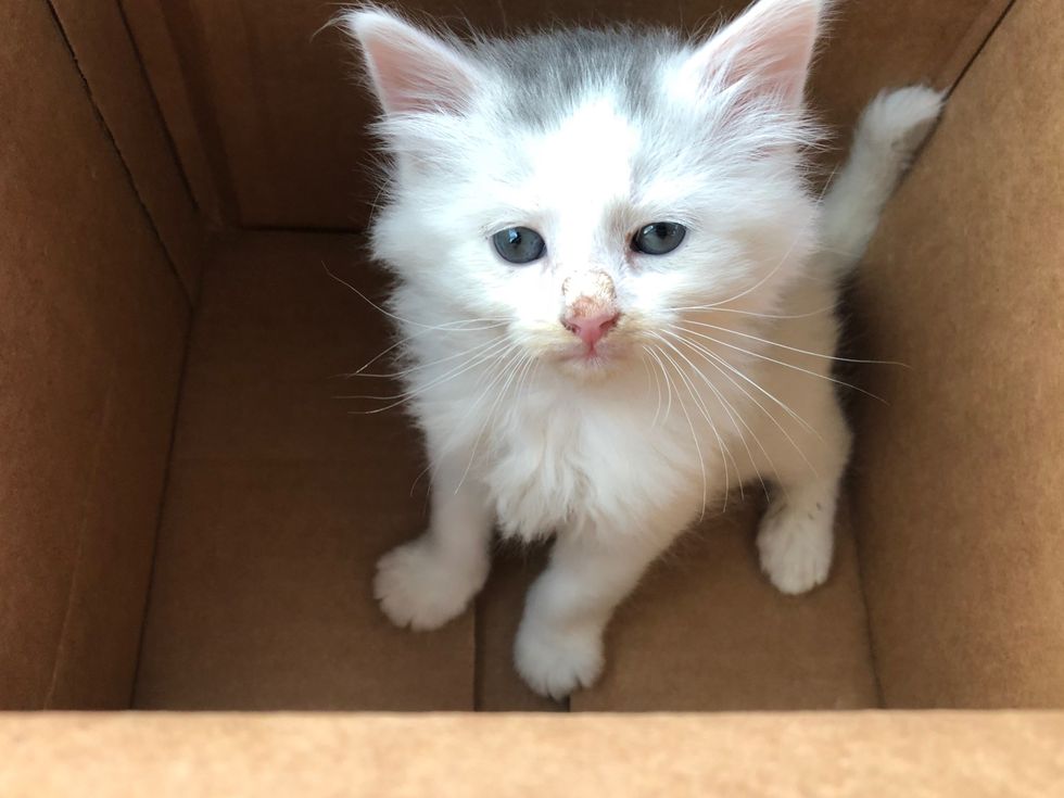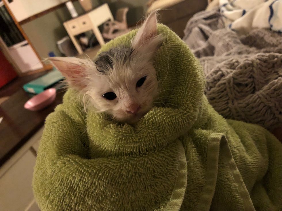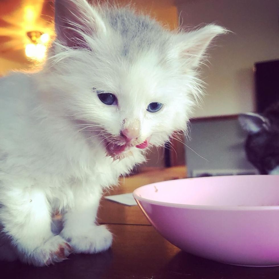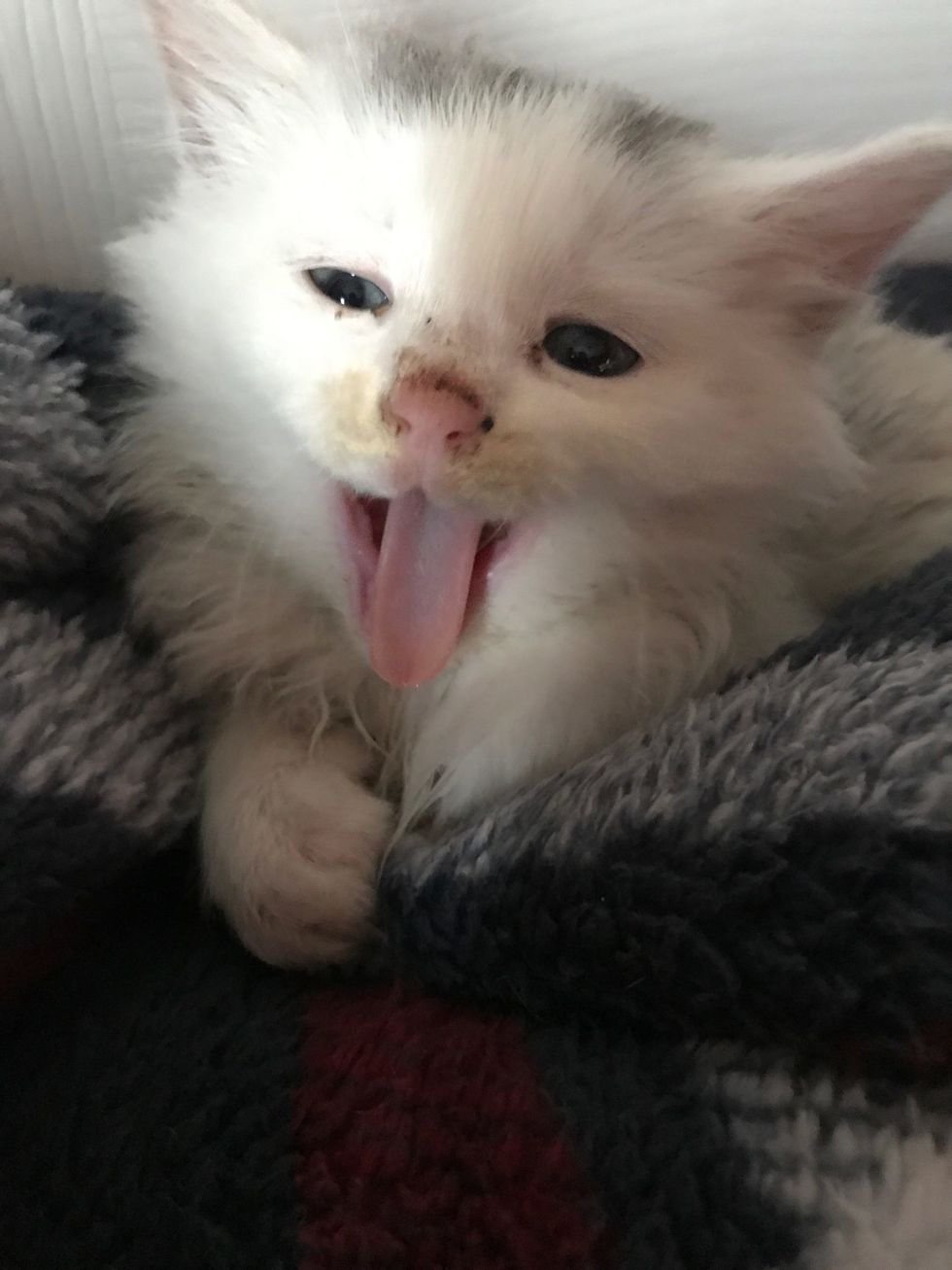 The kitten's rescuer and his wife have previously adopted from IBKC, so they reached out to the rescue since the kitten wasn't eating much and needed extra medical attention.