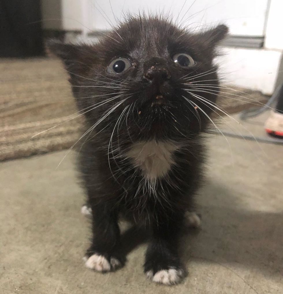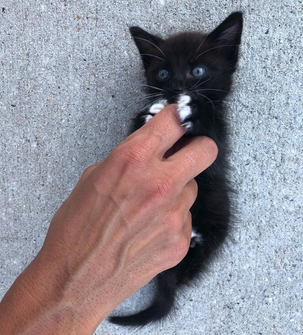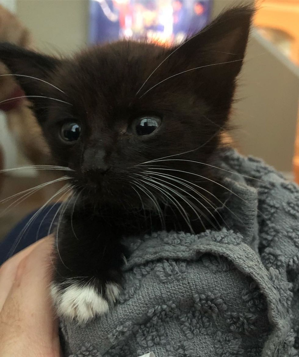 They named him Storm, and the sweet tuxedo just wanted to be held.