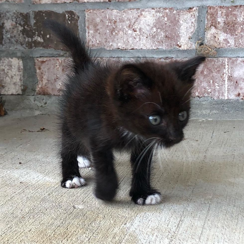 Tara, a police officer from South Carolina, was at a junkyard doing some work last month when she heard meowing coming from a tiny kitten. The little feline was all alone without food and shelter. Tara couldn't leave him to fend for himself so she brought him home.