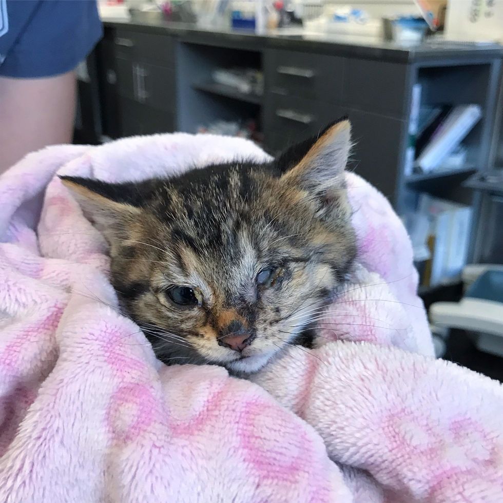 The veterinary team immediately started her on medication for an infection and pain. "She had an infected eye. The vet believes it was so severe that she got it out herself."