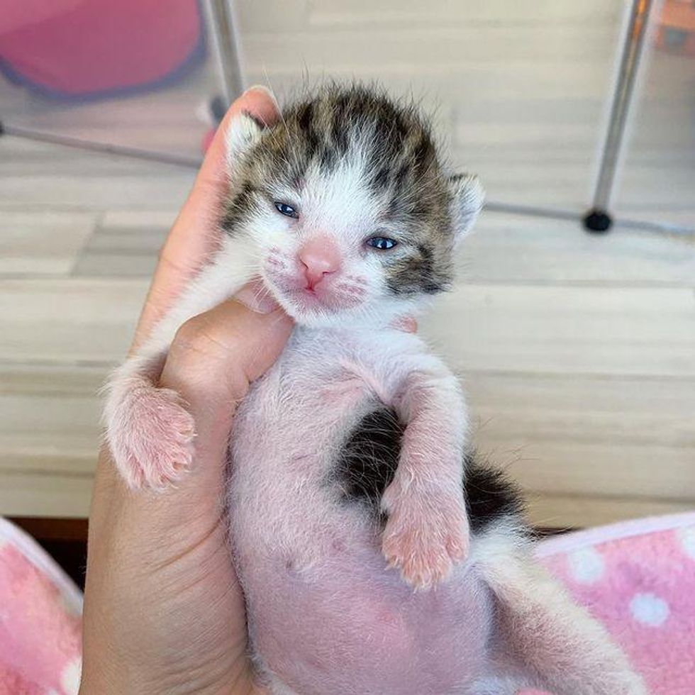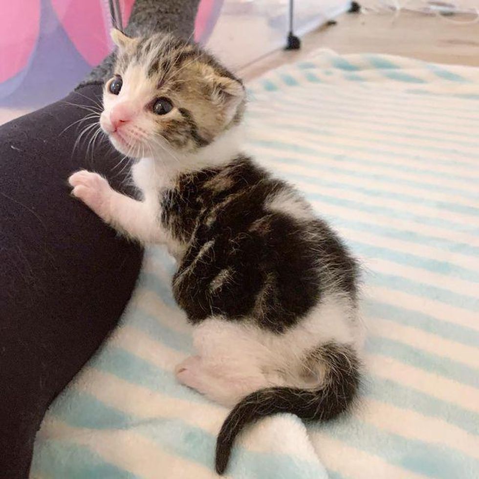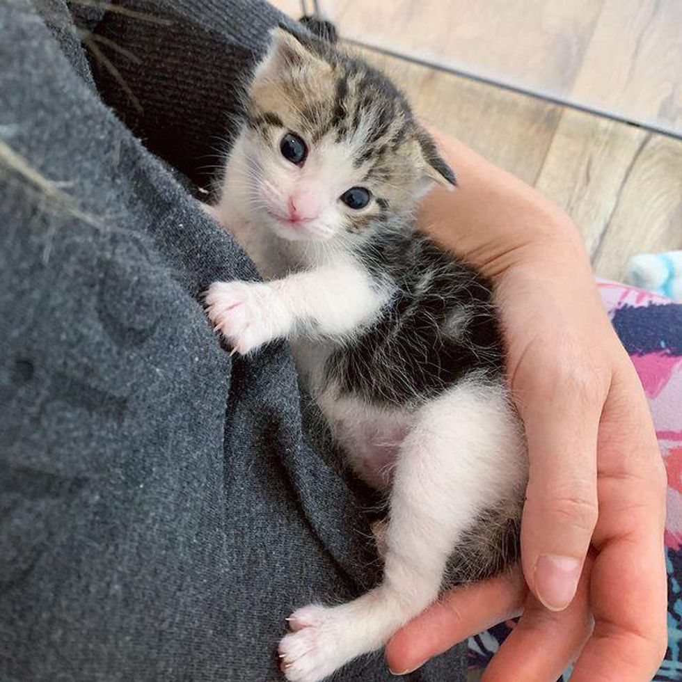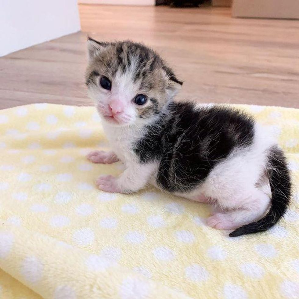 A tiny kitten was found left behind as a newborn and brought back from the brink in the nick of time.