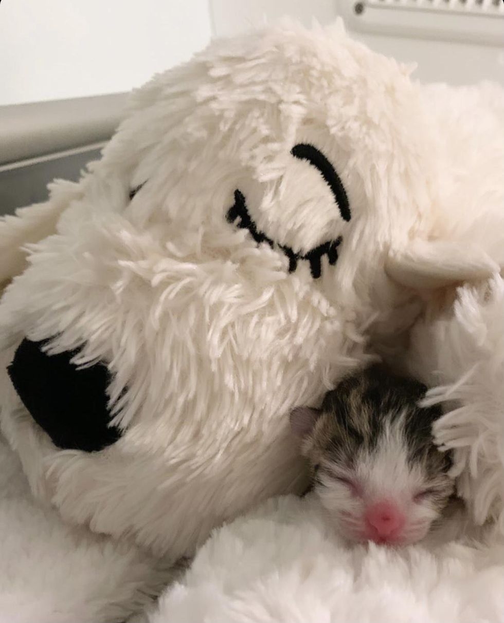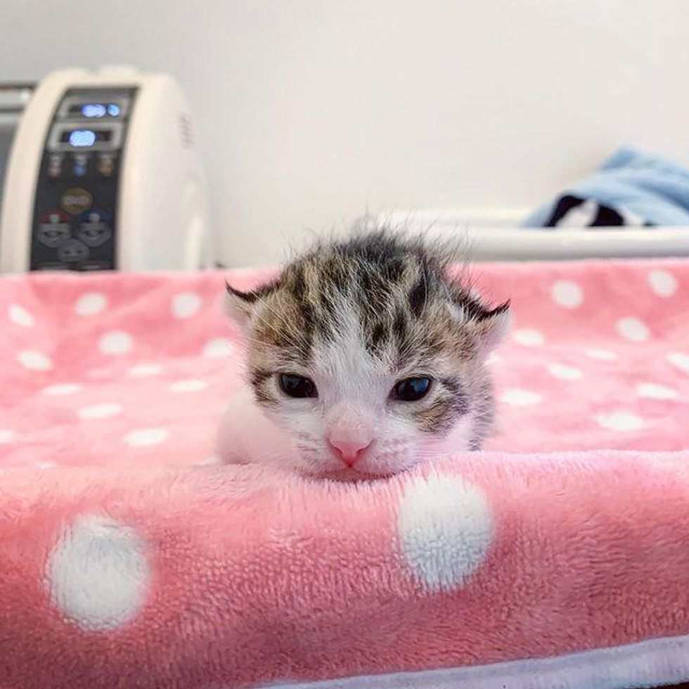 "I spent the whole first day just working to get the kitten (Toby) warm enough to feed him and providing supportive care to keep him going."