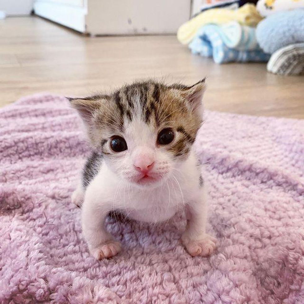 "At 3.5 weeks old, he's still constantly purring. He loves to be held and to give face kisses. He is starting to get more playful as he discovers toys and his surroundings," Caroline shared with Love Meow.