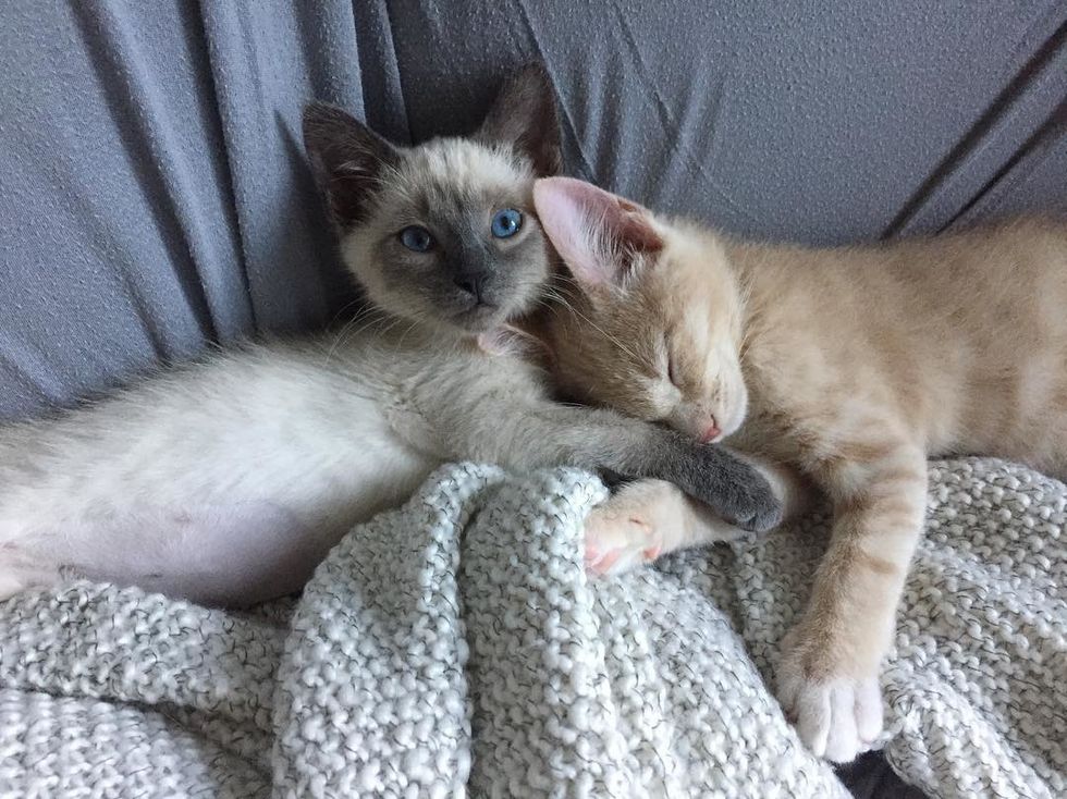 After the kittens arrived at Ashley's warm abode, Chewy the ginger brother stayed by Leia's side the whole time, keeping her safe.