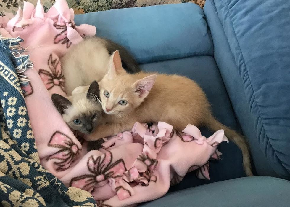 Chewy cuddled up to Leia in their favorite blanket. He purred up a storm while hugging his beloved sister.