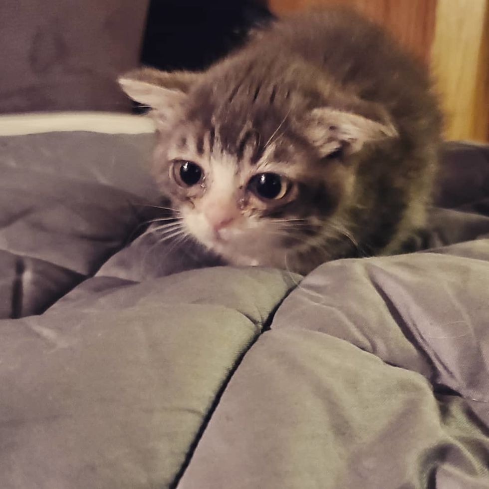 She had space at home so immediately offered to help. One of the kittens stood out as being exceptionally small compared to her litter mates.