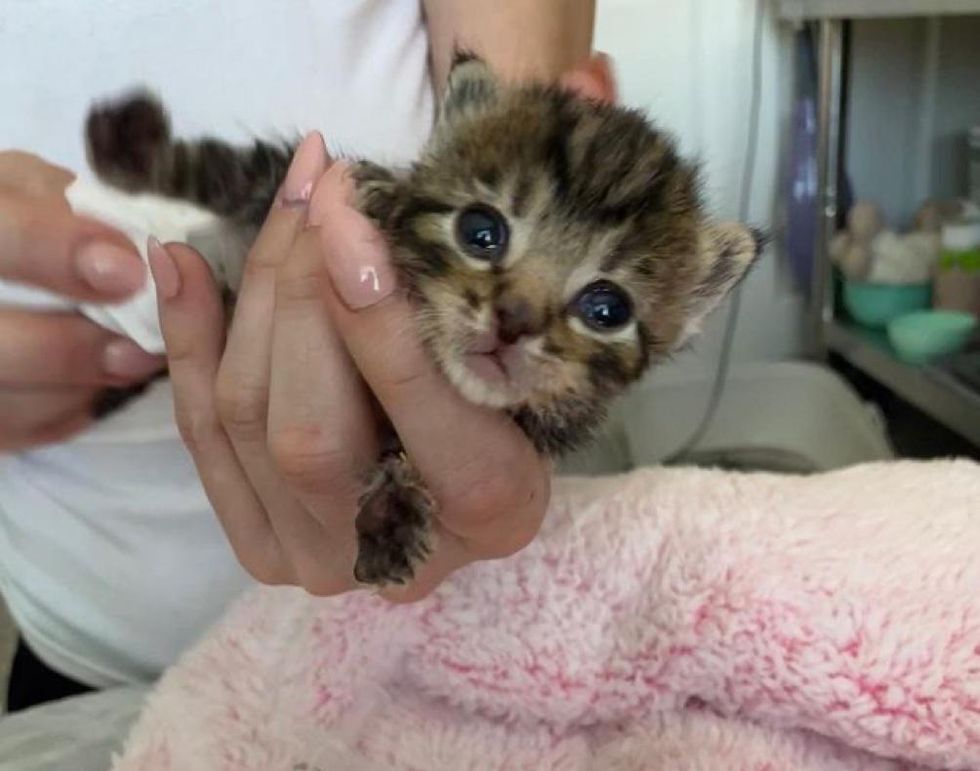 A little tabby kitten insists on being the center of attention after he was brought back from the brink.